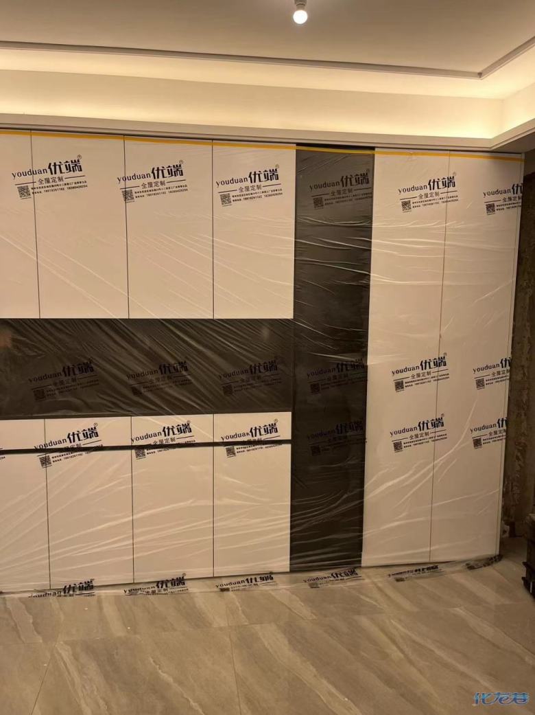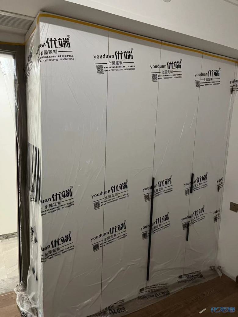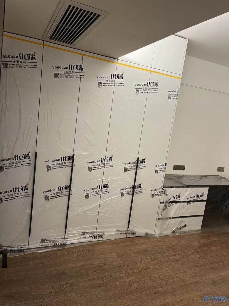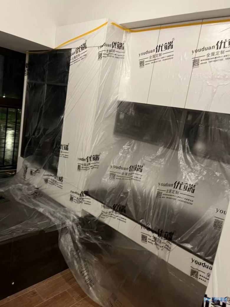 安裝完成的柜子都用塑料膜保護起來了
