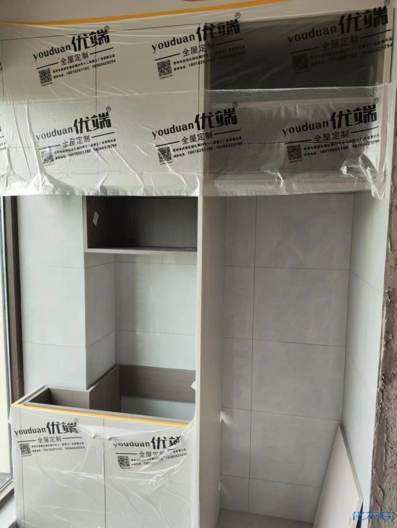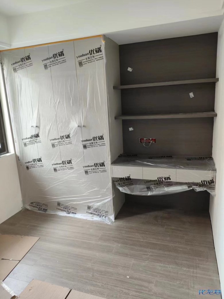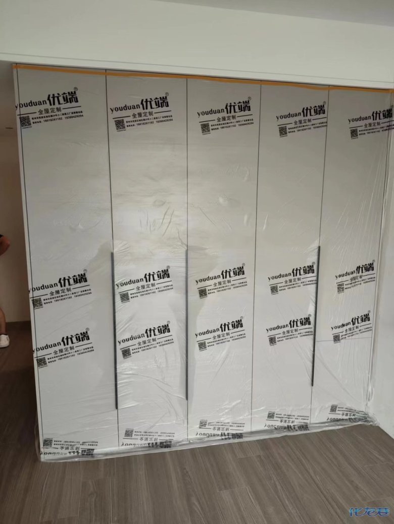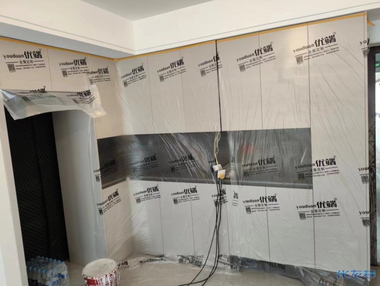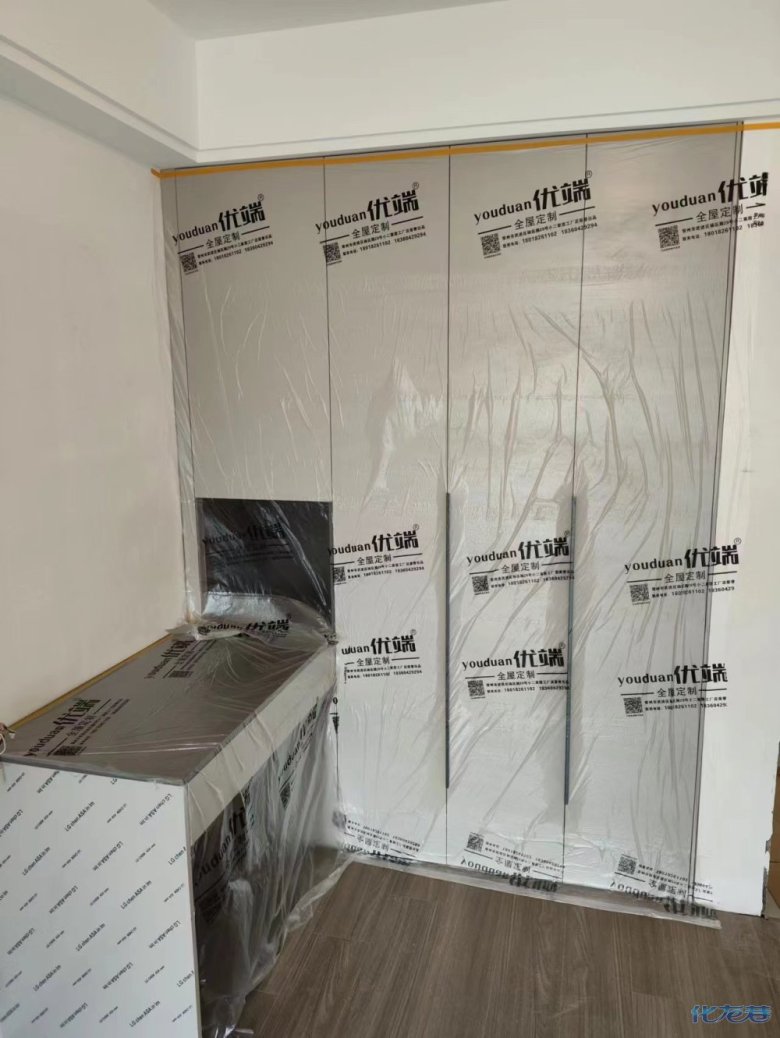 安裝完成的柜子都用塑料膜保護起來了