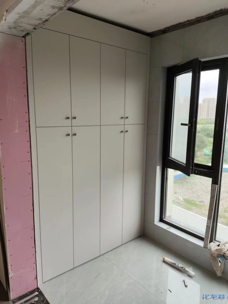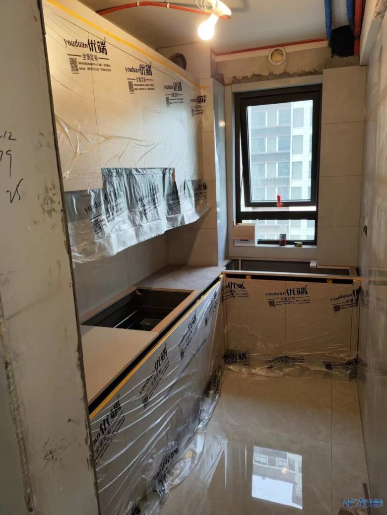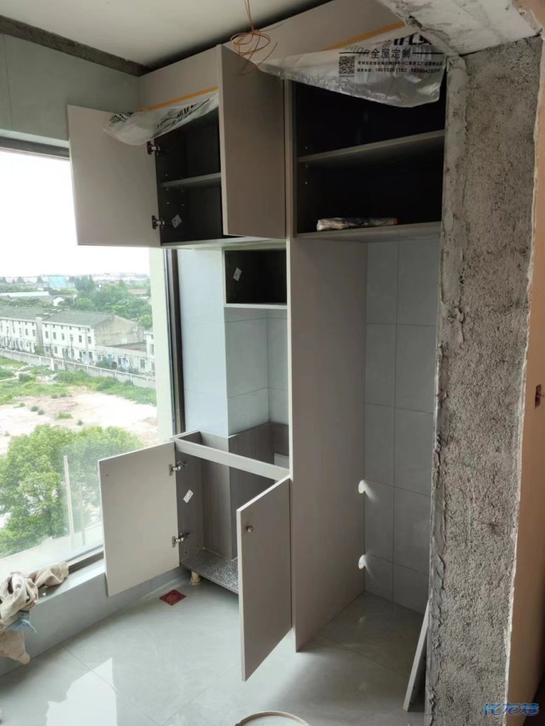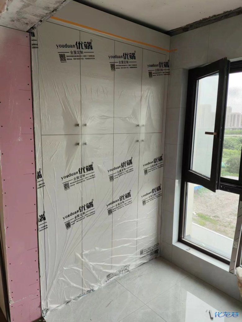 安裝完成的柜子都用塑料膜保護起來了
