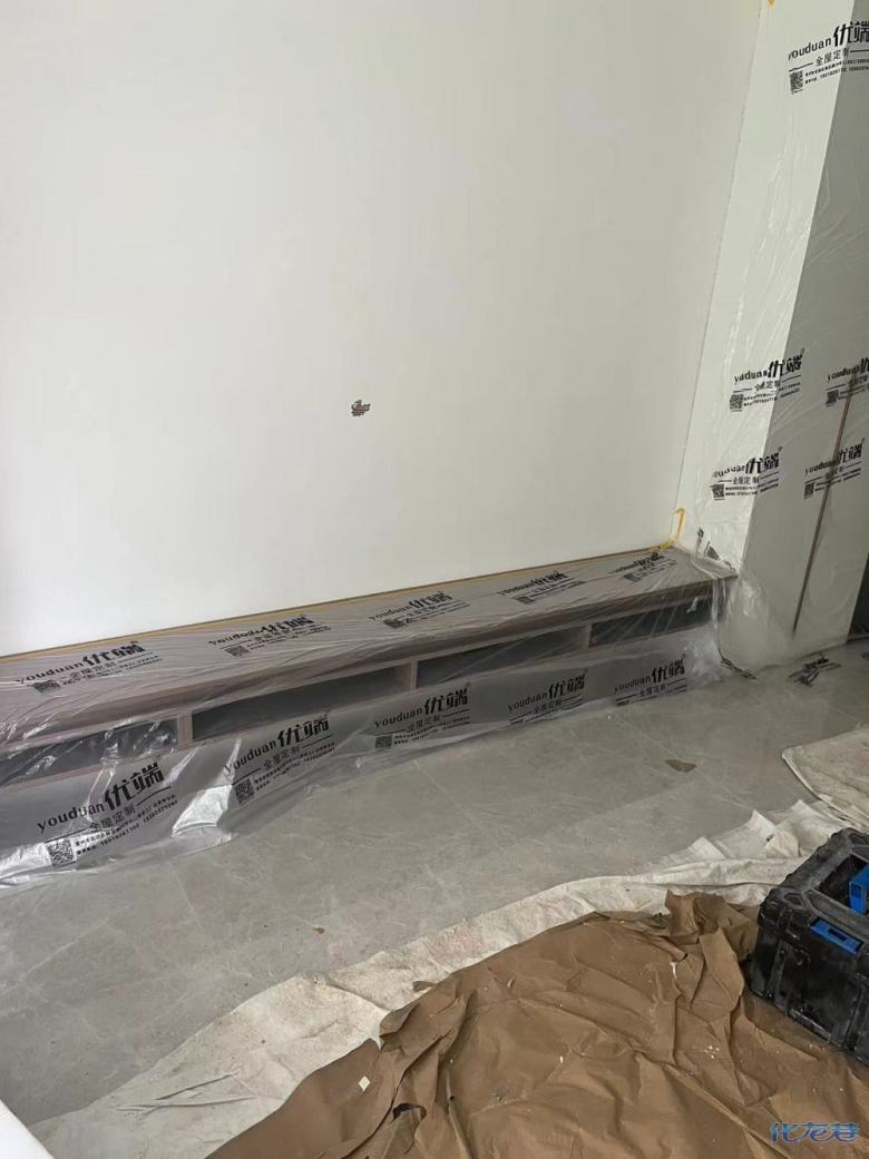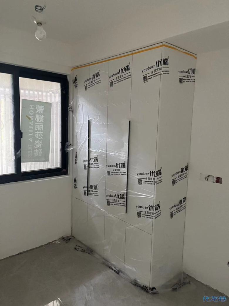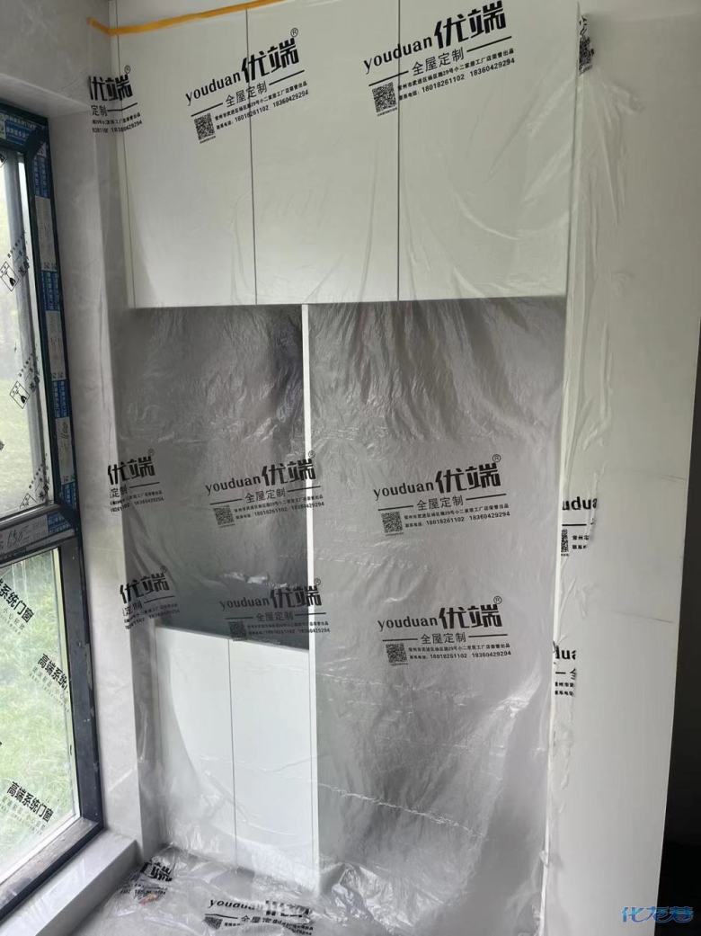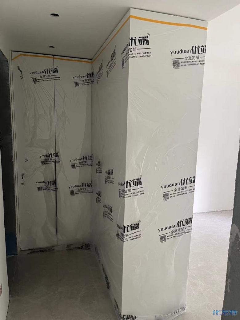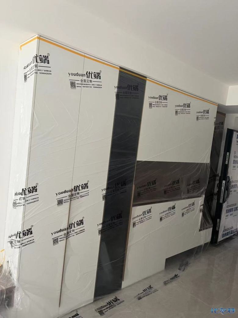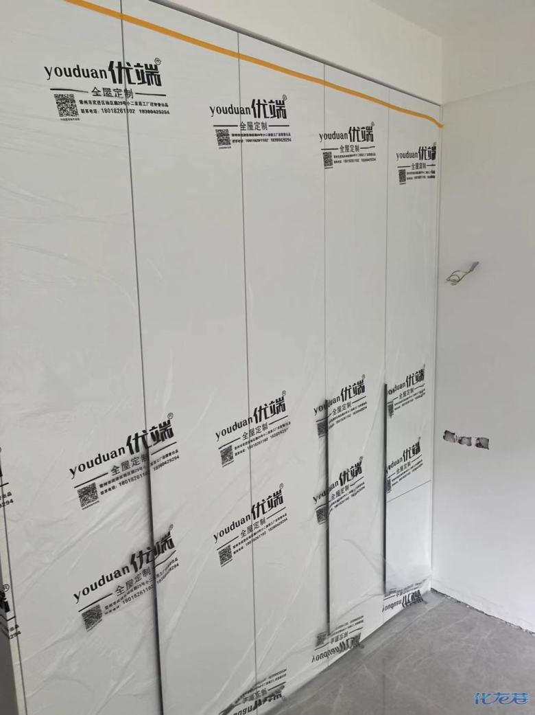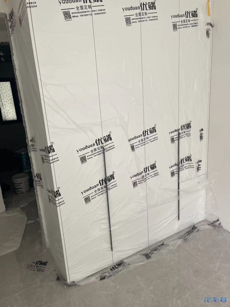 安裝完成的柜子都用塑料膜保護起來了