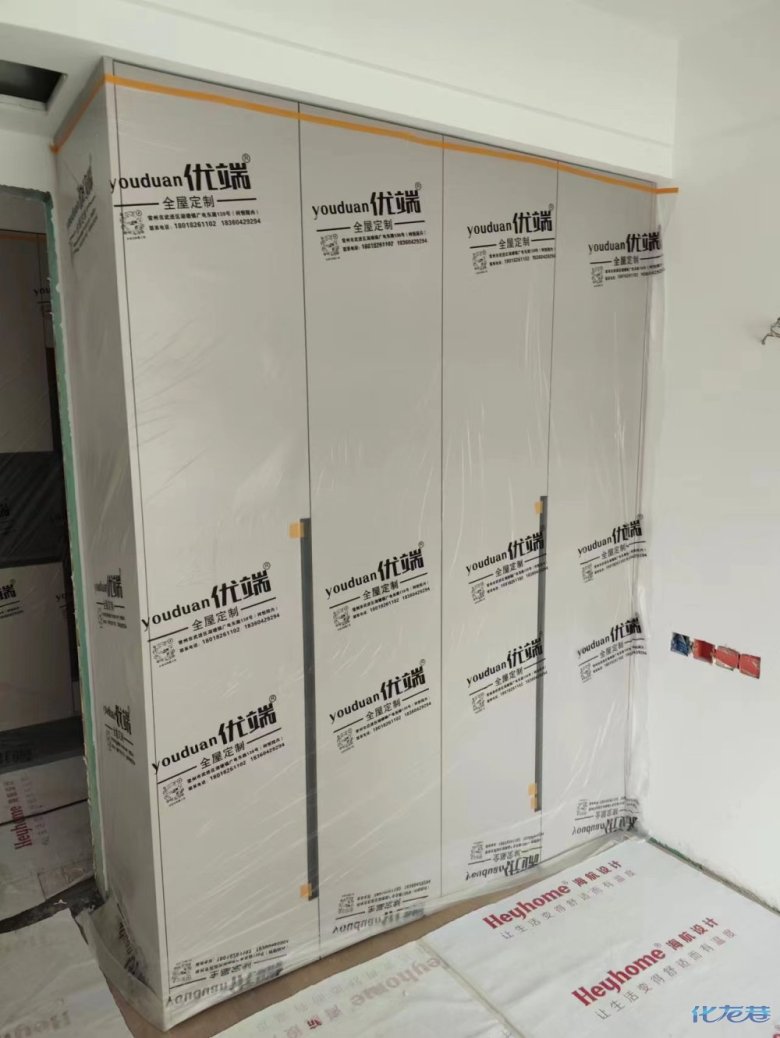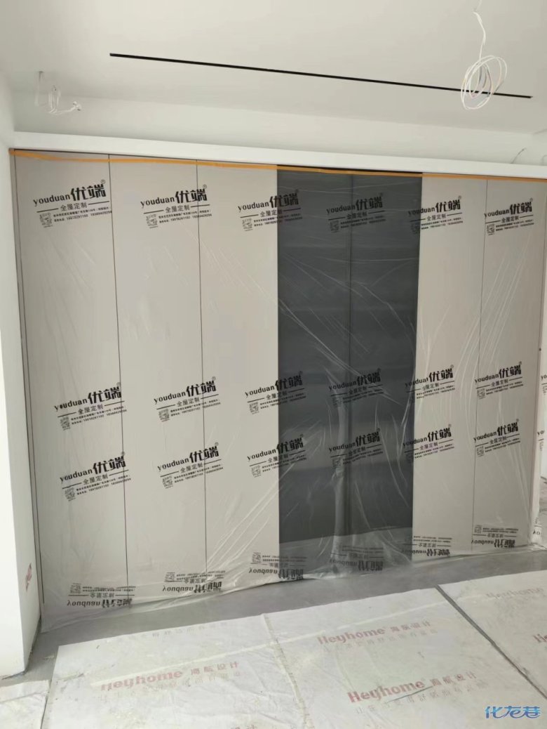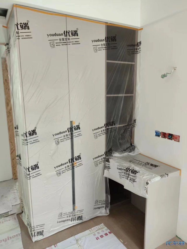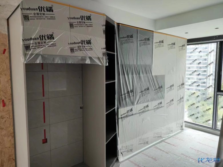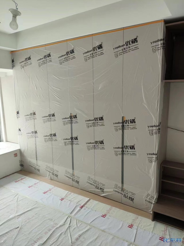 安裝完成的柜子都用塑料膜保護起來了