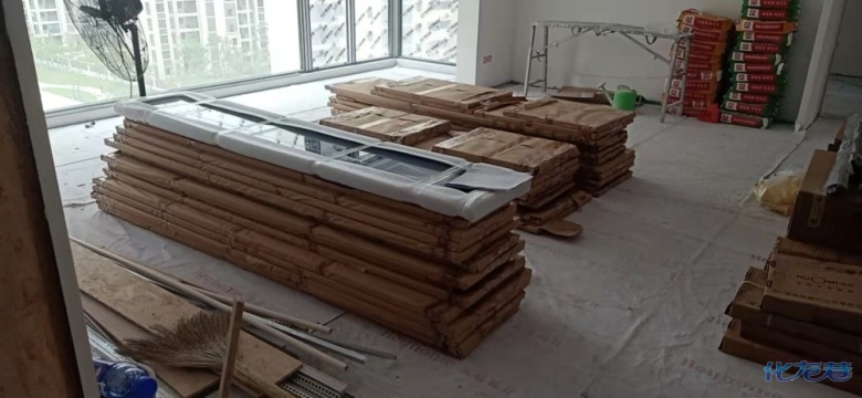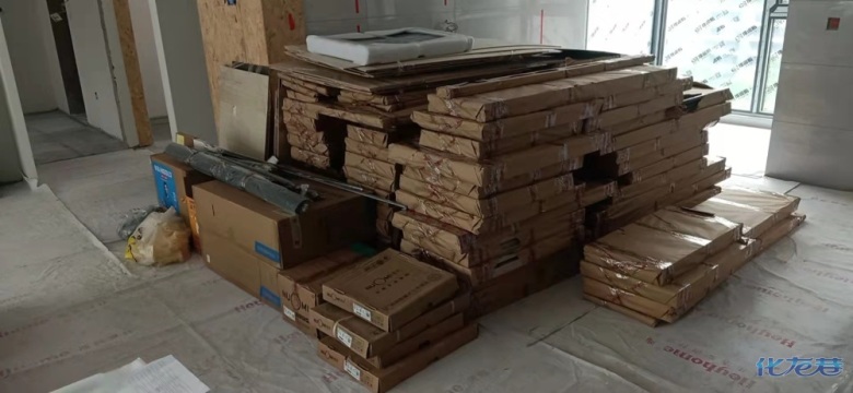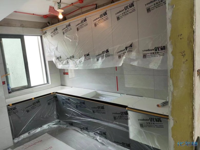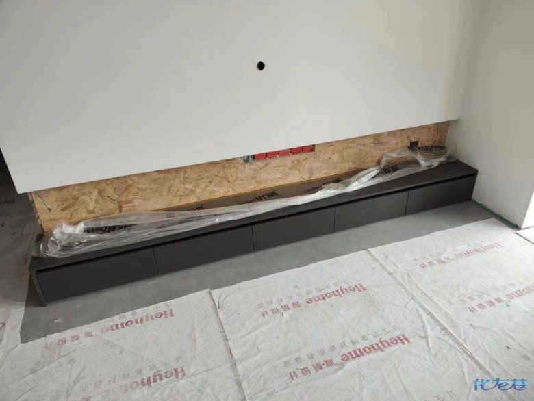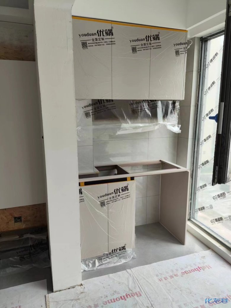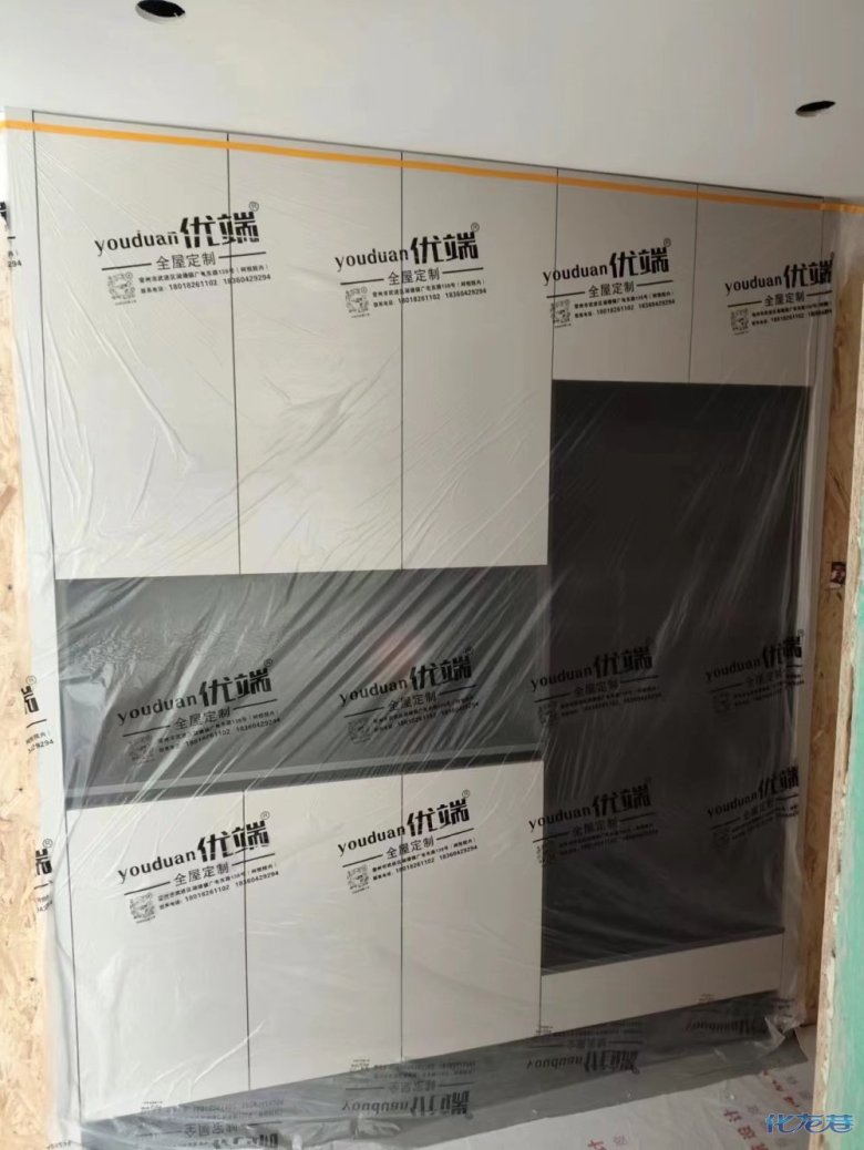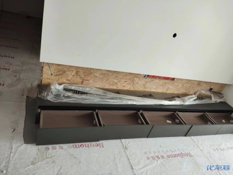 安裝完成的柜子都用塑料膜保護起來了