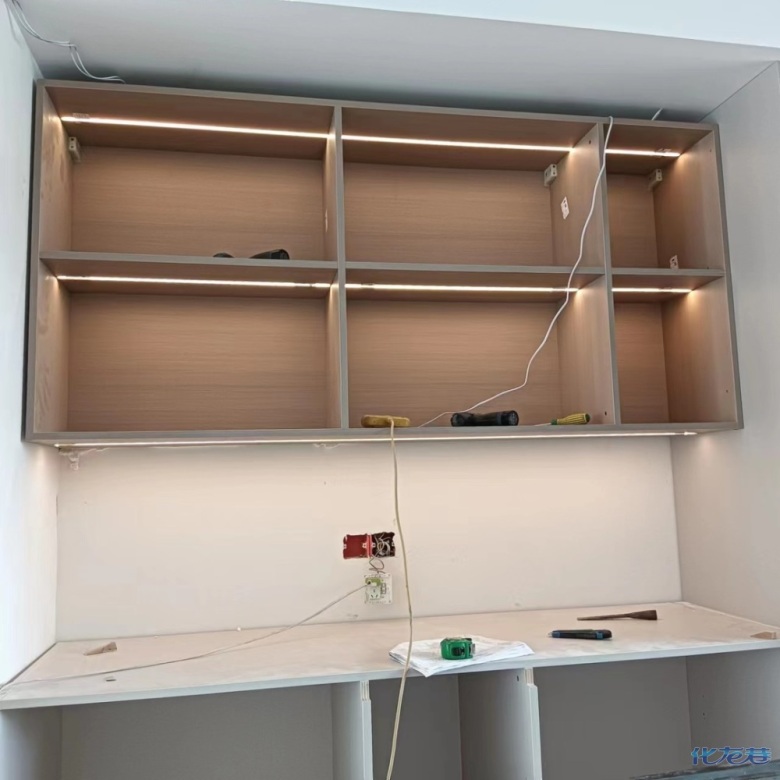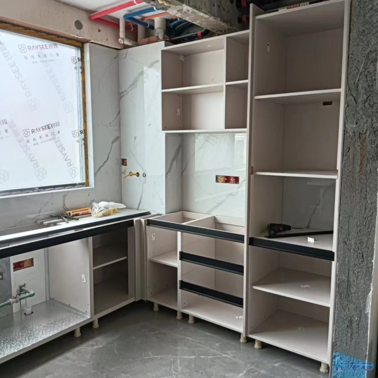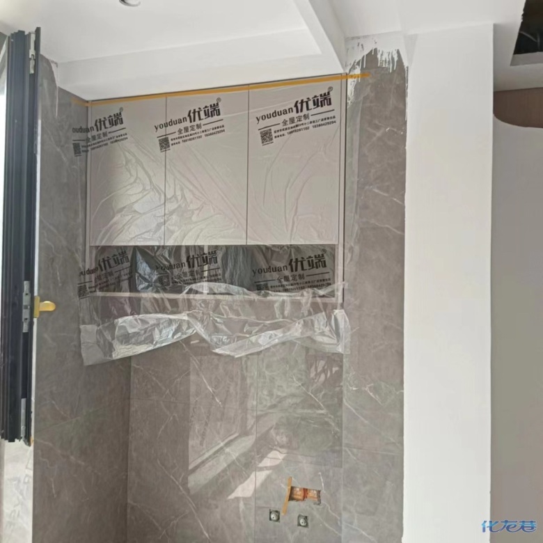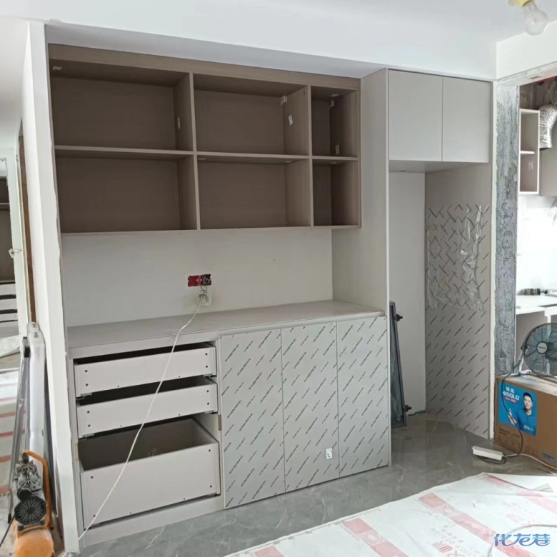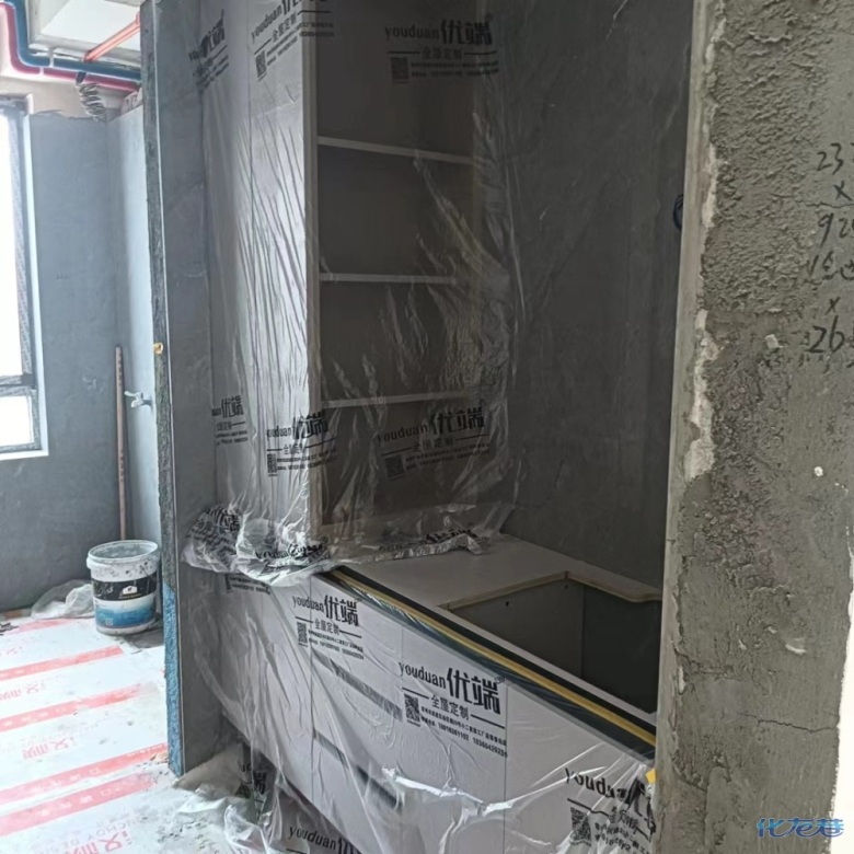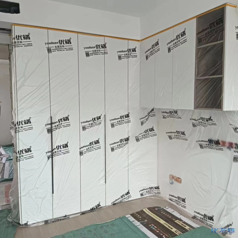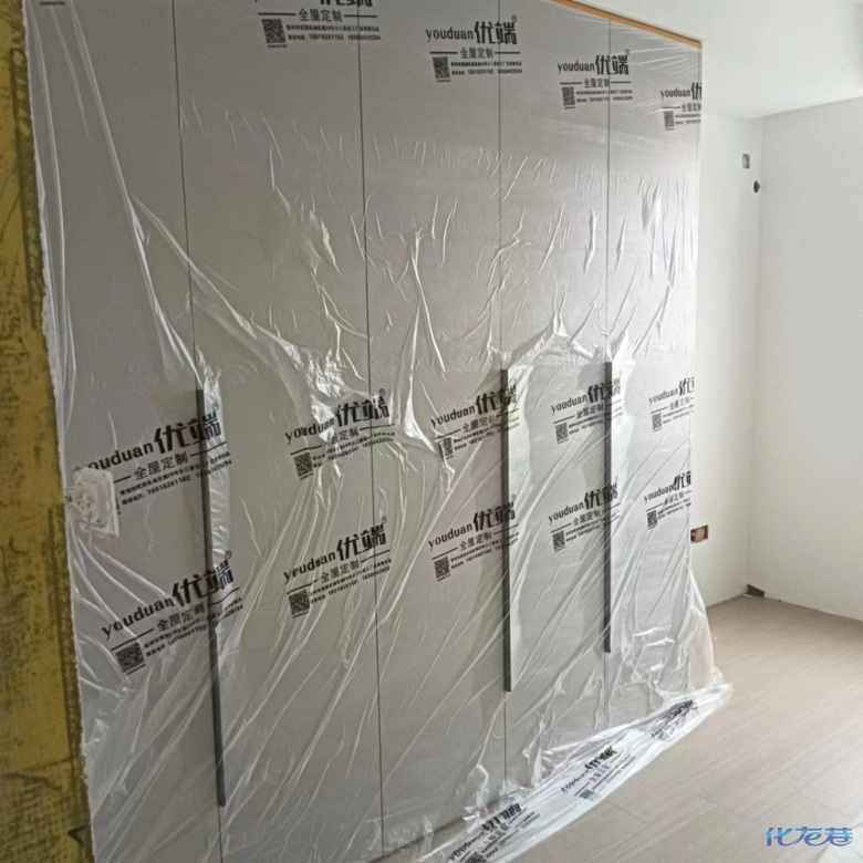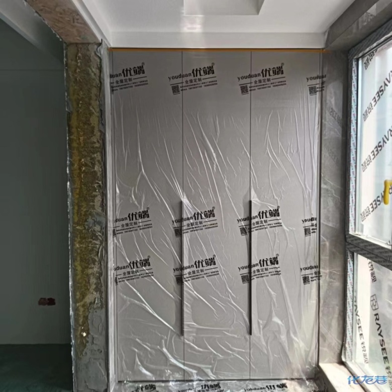 安裝完成的柜子都用塑料膜保護(hù)起來了