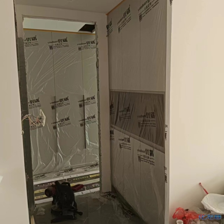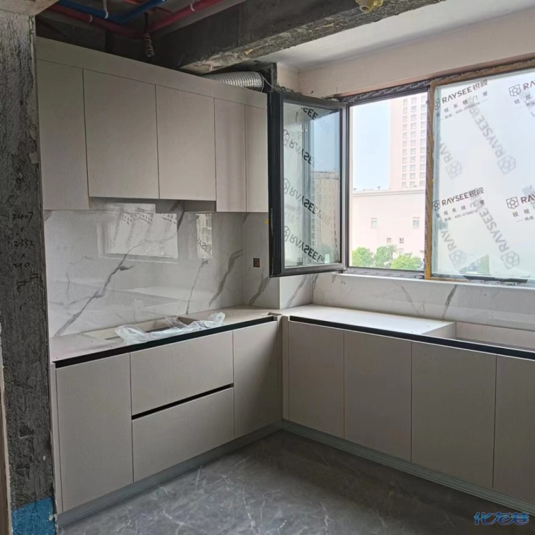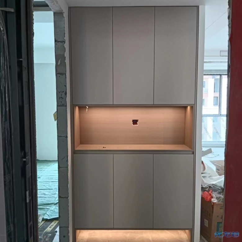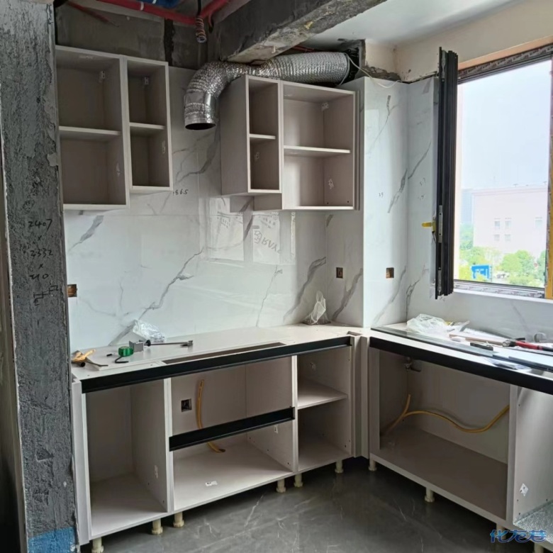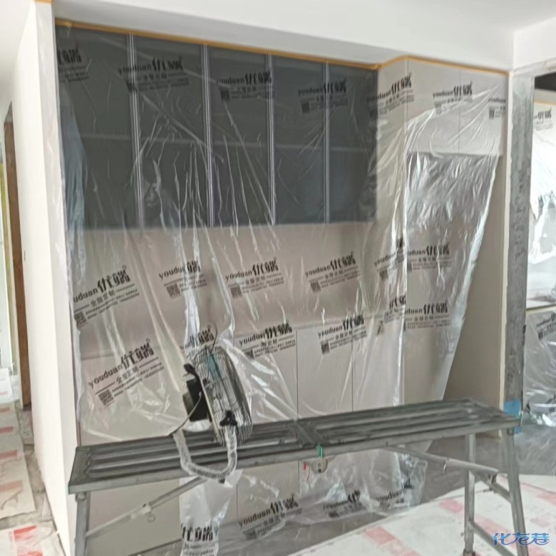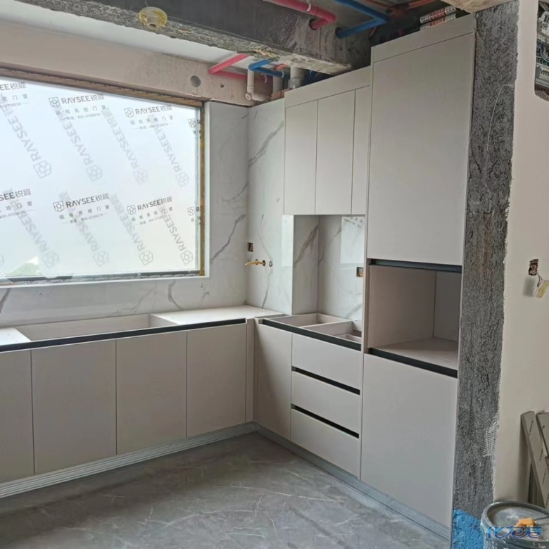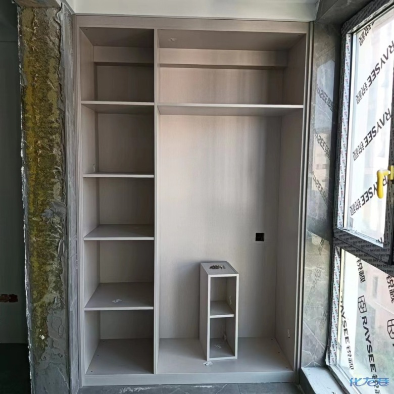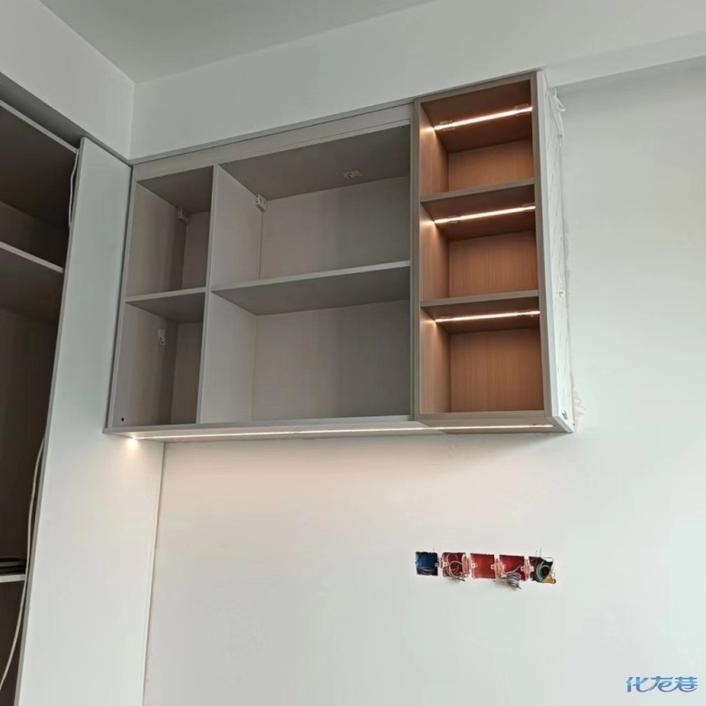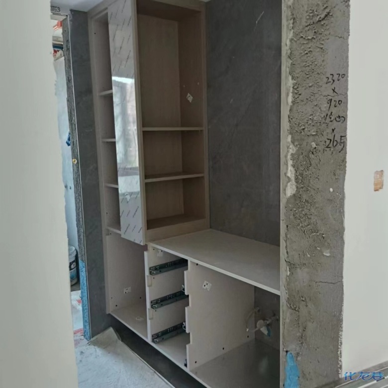 安裝完成的柜子都用塑料膜保護(hù)起來了