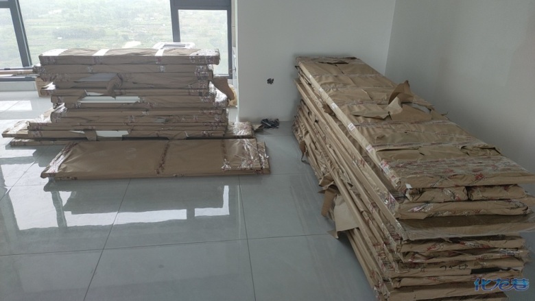 安裝完畢,安裝完成的柜子都用塑料膜保護起來了