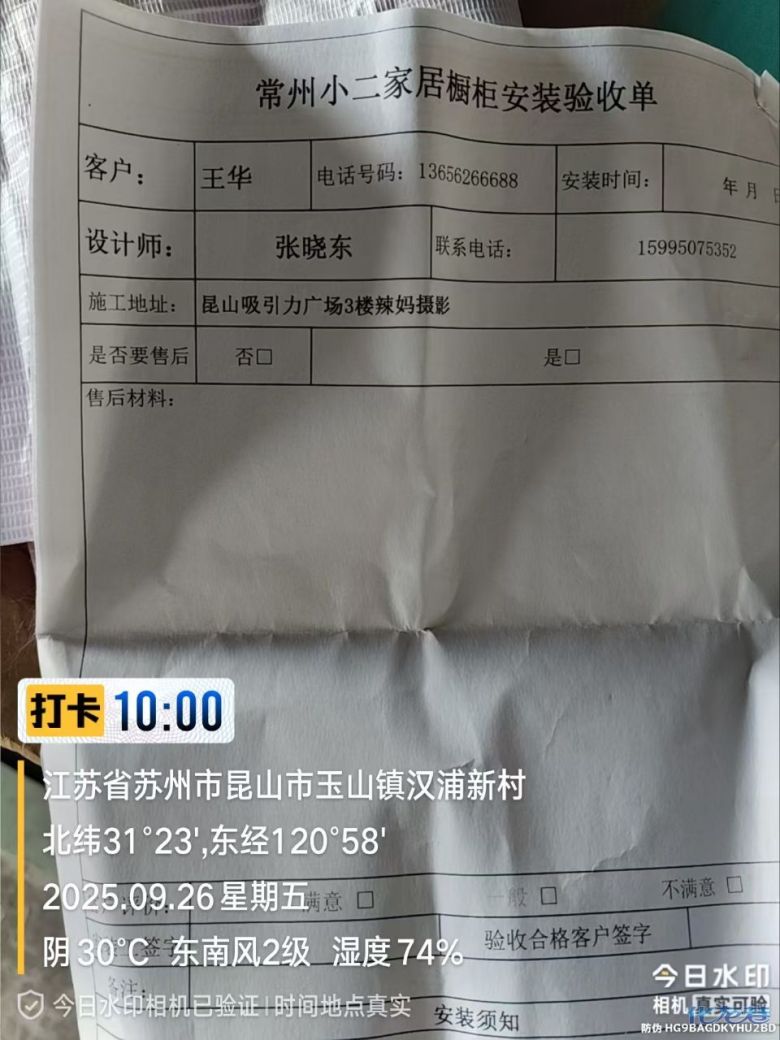 貨已安全送到客戶家了,7 天內安排師傅上門安裝哦。安裝階段請您把您家需要用到的廚房水槽、灶具、浴柜臺盆放置在現場,后期臺面安裝需用到。柜子安裝好后進入臺面測量環節,臺面量完后一個星期內送貨并安裝。