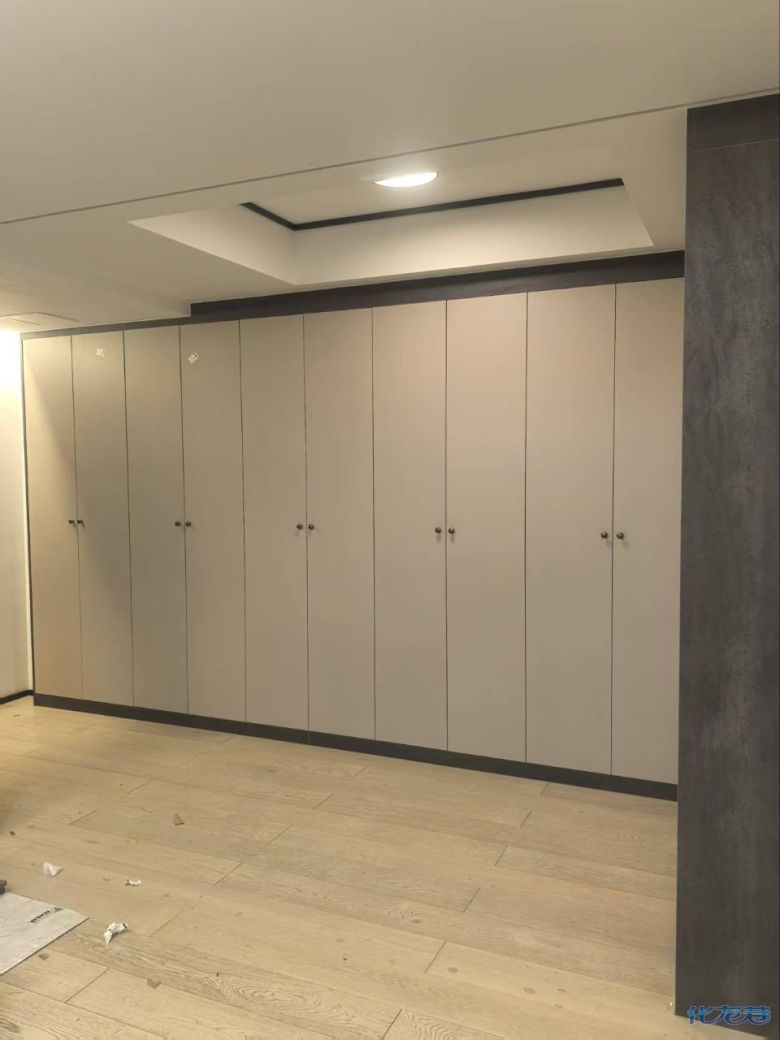 安裝完成的柜子都用塑料膜保護起來了