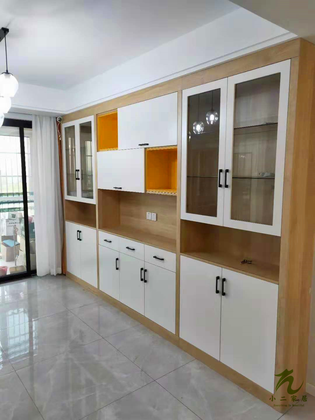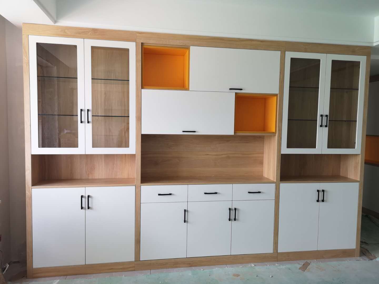 半成品的圖先放上來,這柜子的拼色是不是很驚艷呢!原木色加白色也是很經(jīng)典了