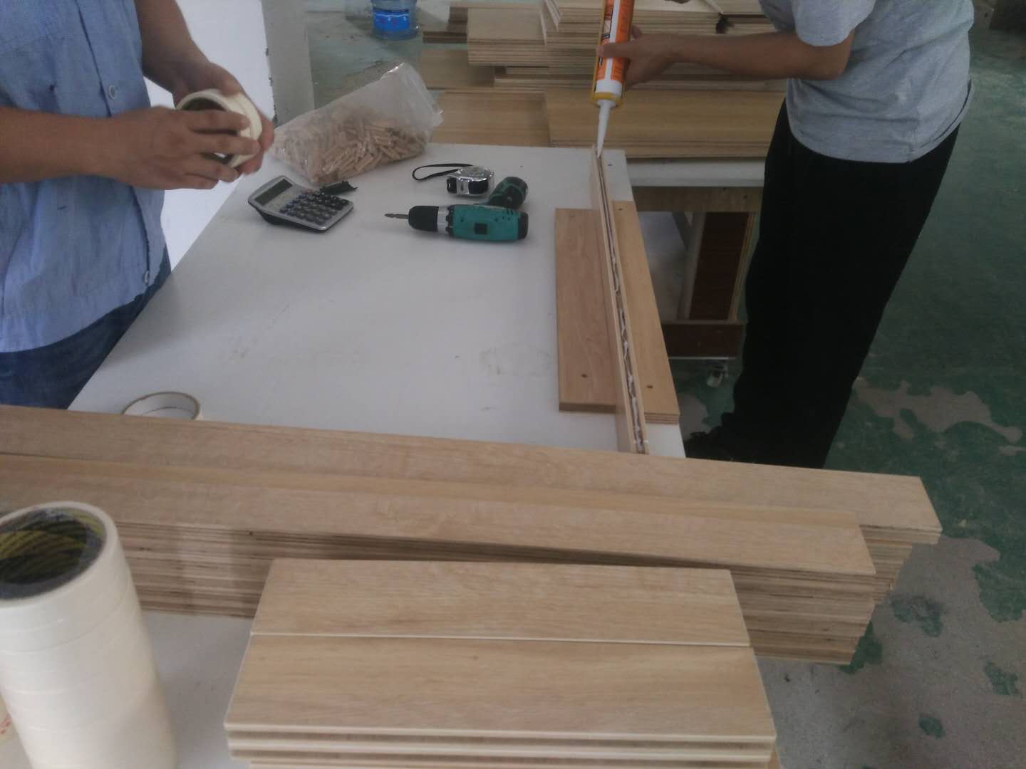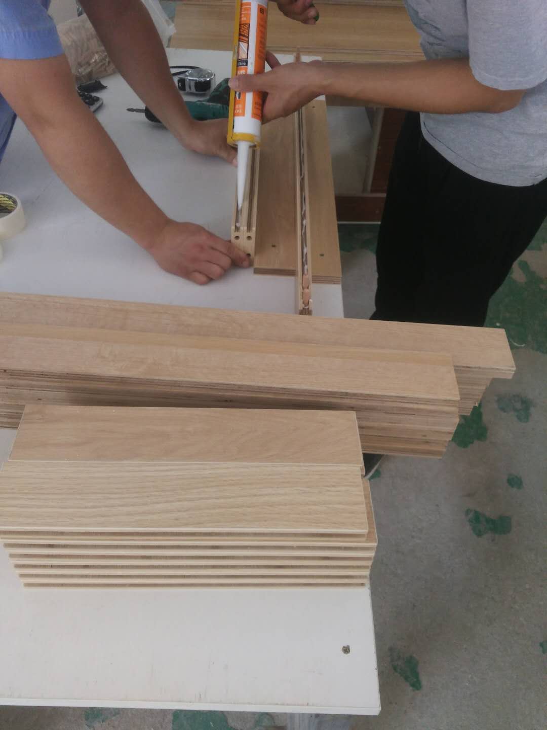 榻榻米儲物柜板制作中