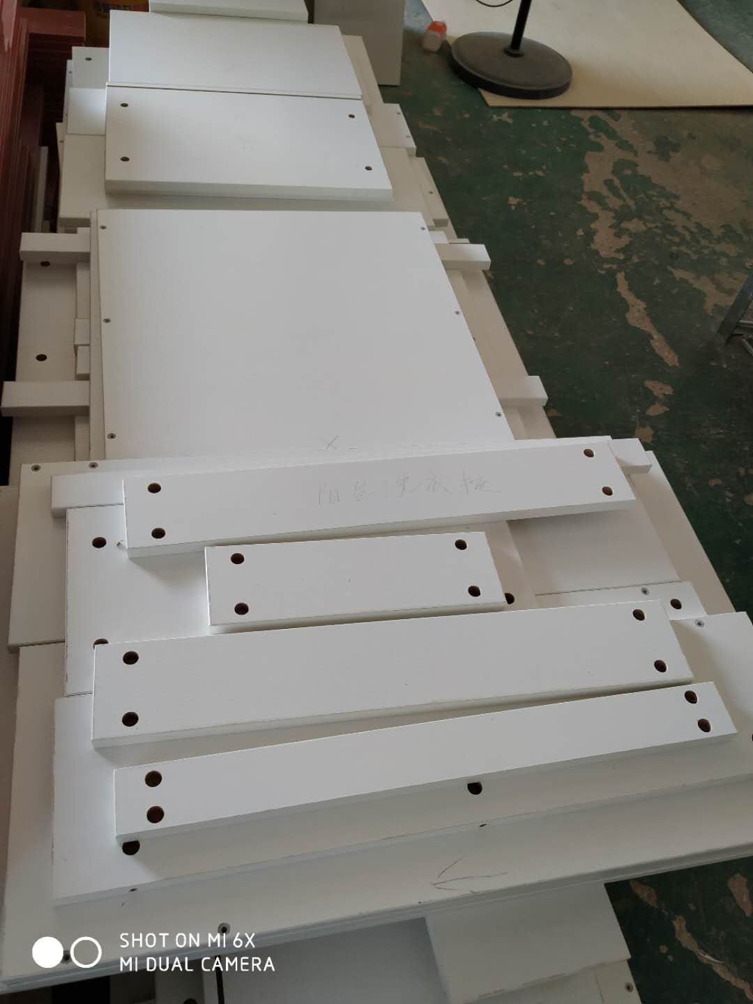 已封邊,陽臺洗衣柜,廚房吊柜的板打孔中,平安樹板材高級藍光防偽哦!
