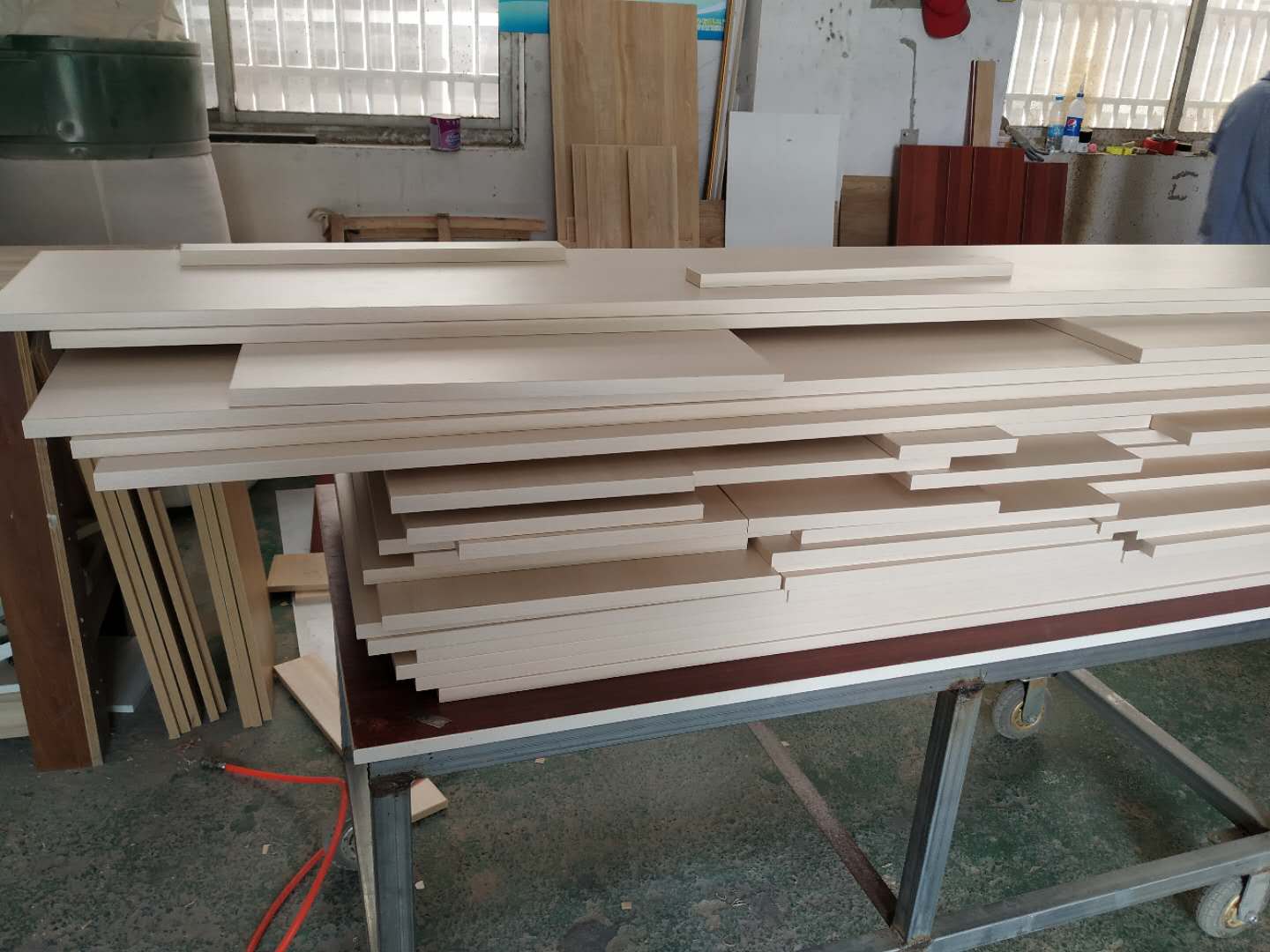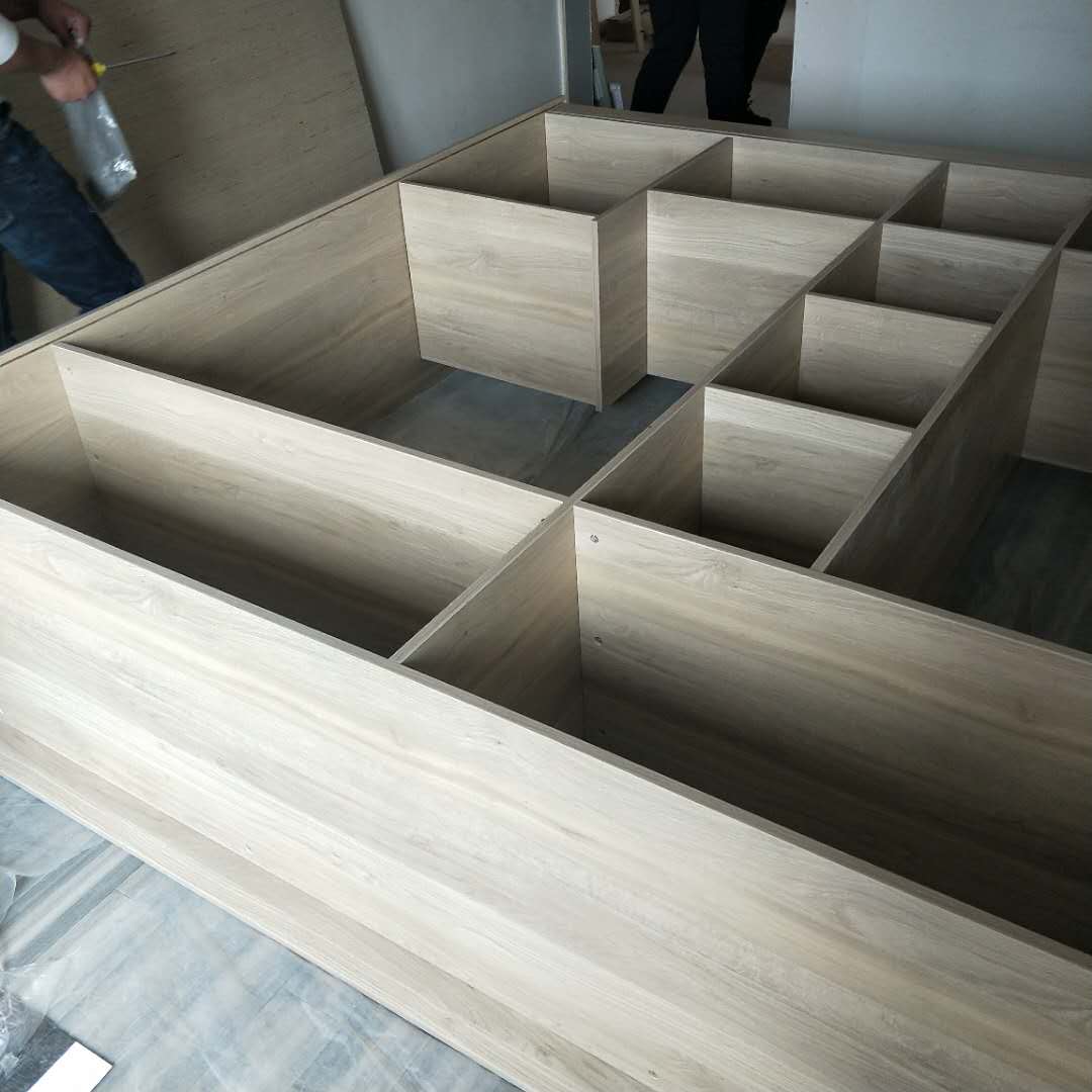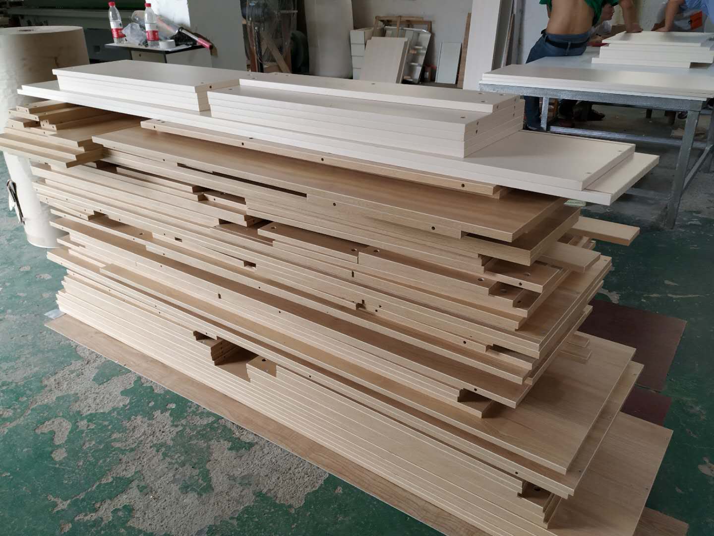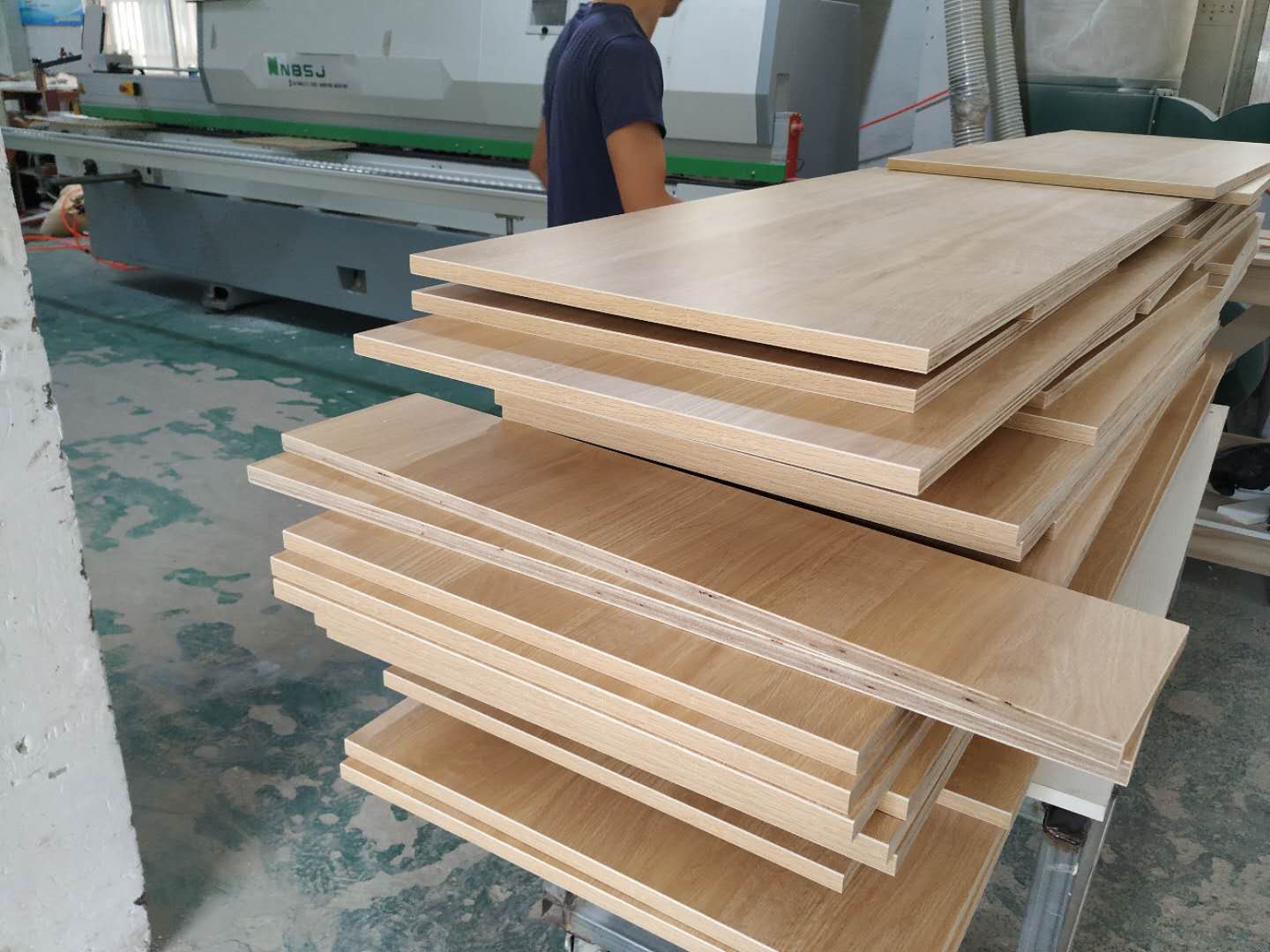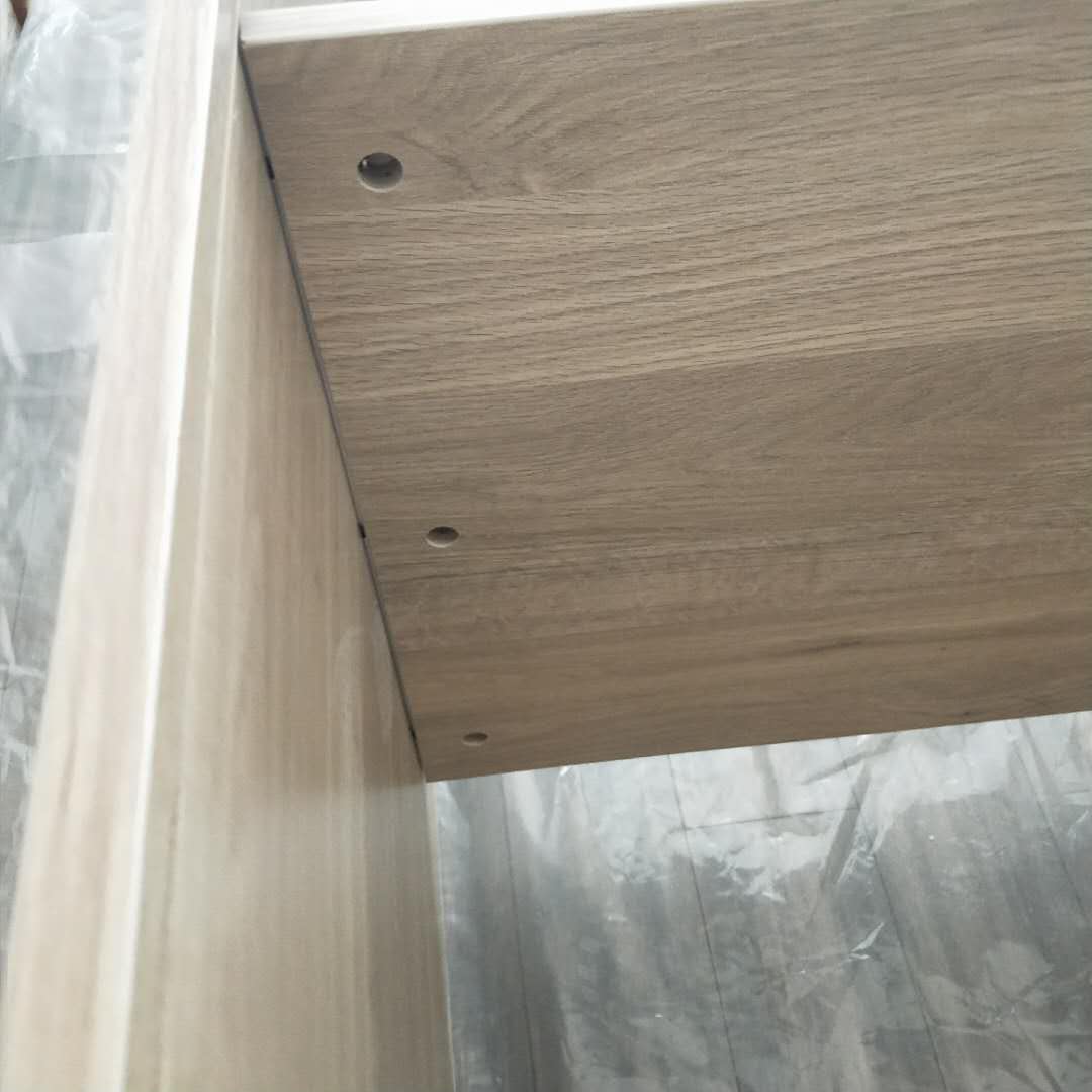 櫥柜高柜打孔中,衣柜裁板中,使用平安樹富貴灰橡板制作衣柜,金沙榆板制作櫥柜!期待它們能在業主大大家大放光彩!