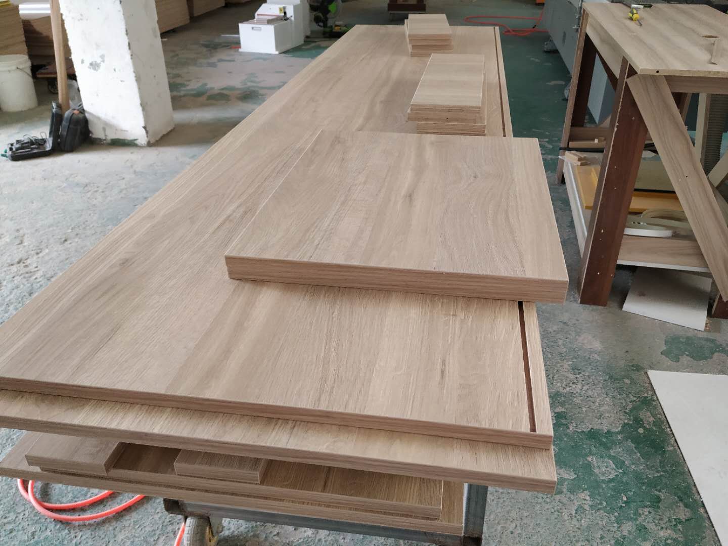 鞋柜板飄窗板打孔中,平安樹實木多層板,有高級藍光防偽哦!