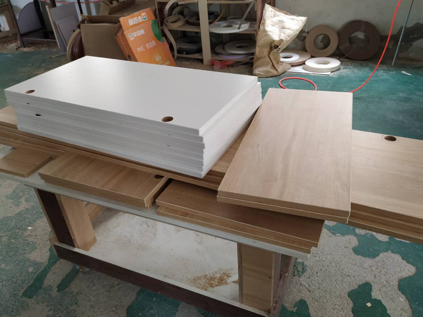 加厚的是隔斷板,下面沒有加厚的是打好孔的櫥柜板!圖5是衣柜板未封邊和已封邊的比較,圖7圖8是門板,門板上的圓孔是裝鉸鏈的哦!