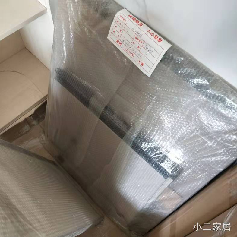 衣柜板封邊打孔中,封邊條上印有小二家居的logo!