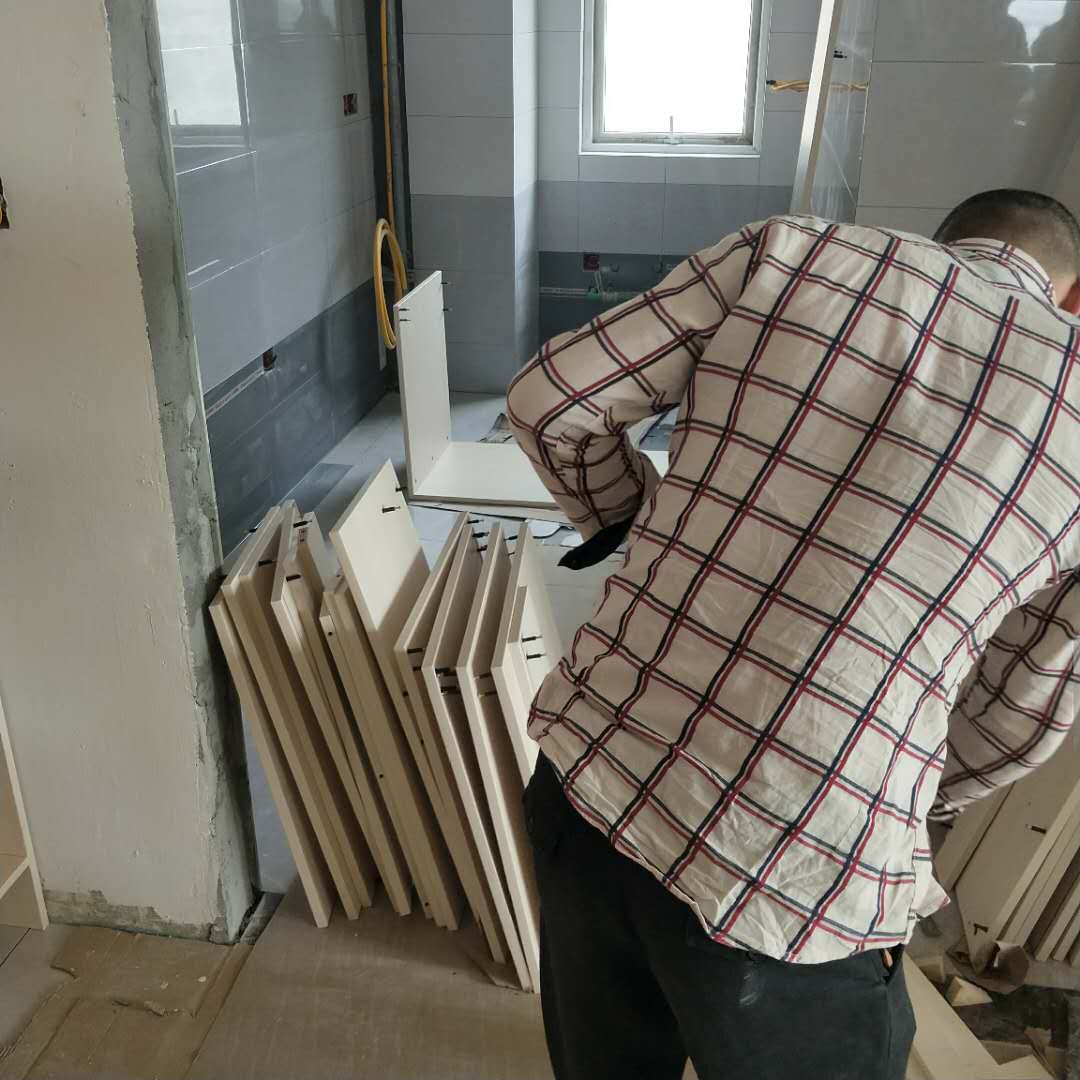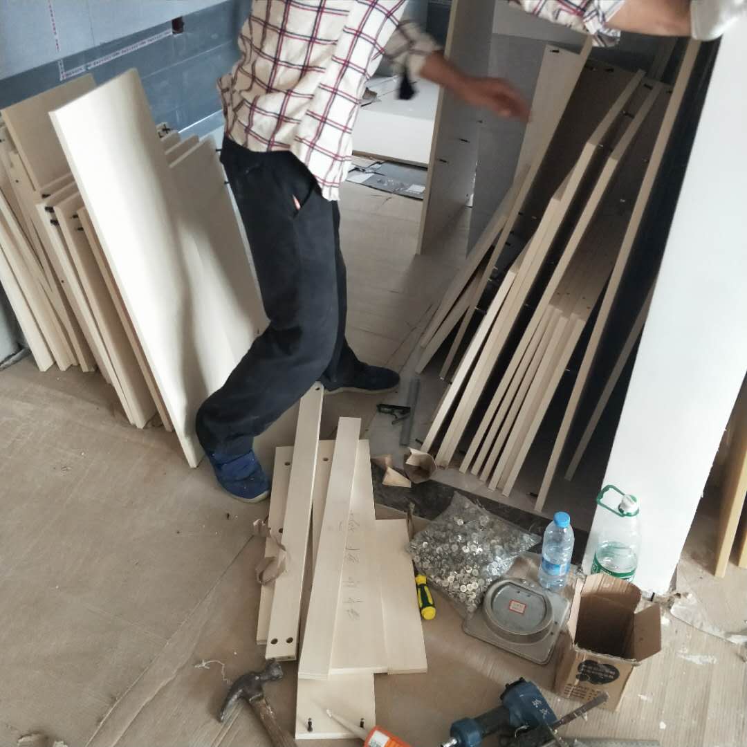 先發一波師傅安裝櫥柜的圖片~安裝好了再發一波成品圖