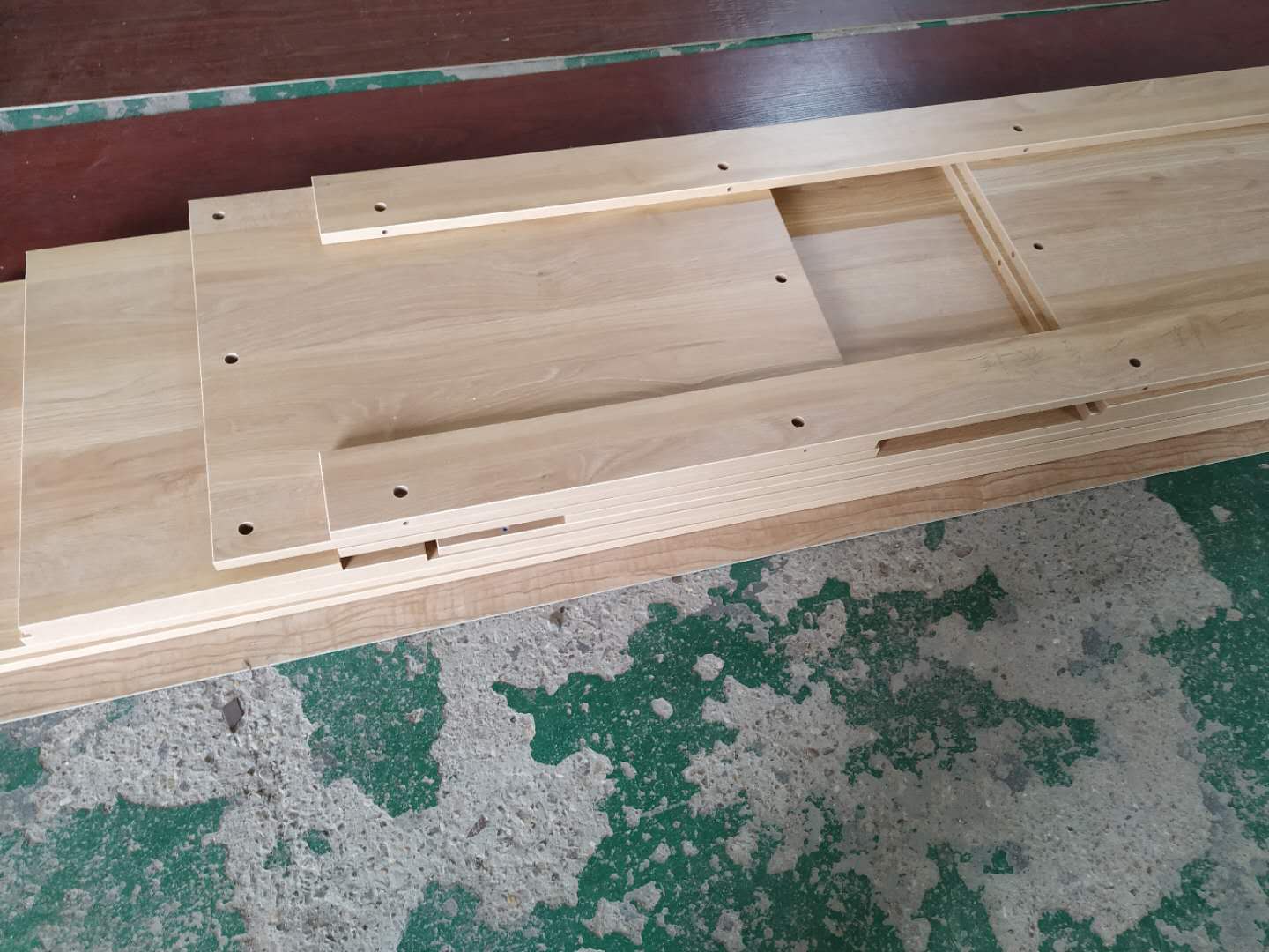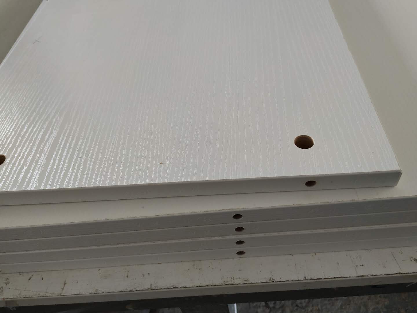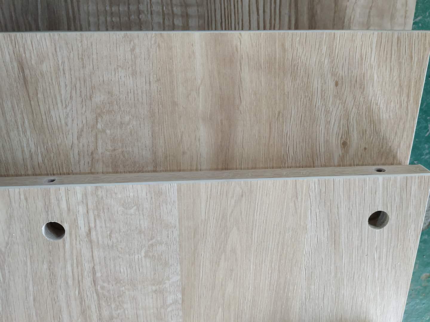 圖1是昨天打孔的二樓衣柜柜體板,已經打孔完畢啦。