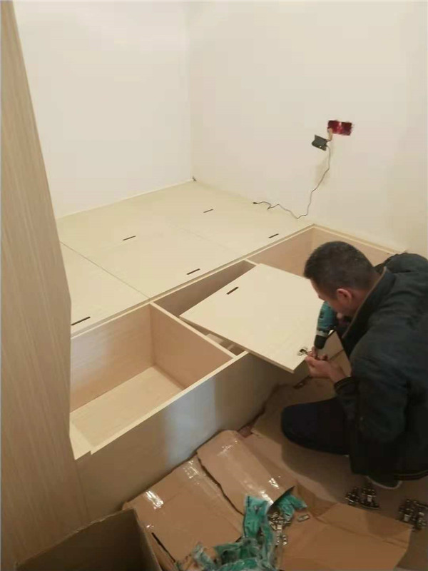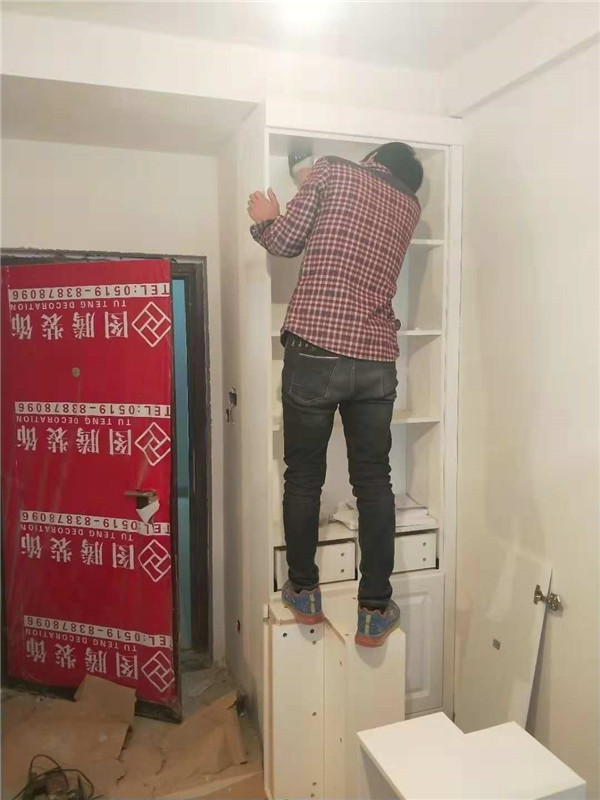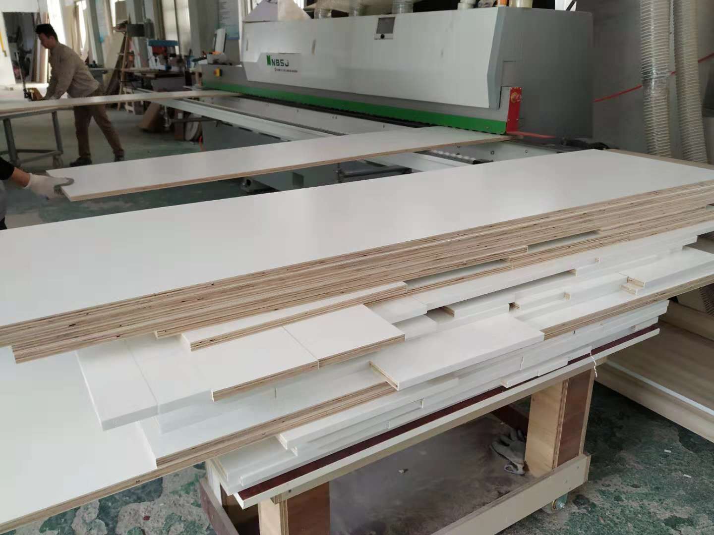 開始制作啦,櫥柜板制作中,已經裁好板在封邊了。
