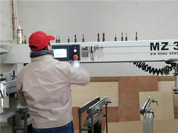 開始制作啦,衣柜和衣帽間的板材已經封好邊啦,今天開始打孔~打孔使用專門的機器打孔,板材使用平安樹仿古布紋色實木多層板制作。