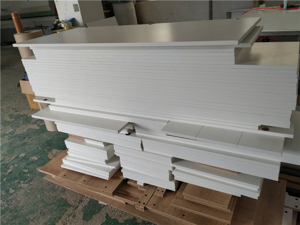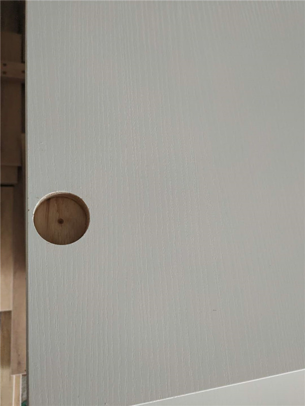 仿古布紋色的柜體板材已經打包好啦,暖白色的柜門板材也已經打好孔了,大圓孔是用來裝鉸鏈的,其他板材也做得差不多啦