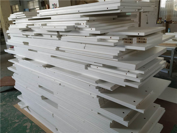 方形的板材是做浴柜的門板,旁邊的板材是做衛浴柜吊柜的板材,板材封邊中,使用平安樹暖白色實木多層板制作,一部分柜體板材已經打包好啦。