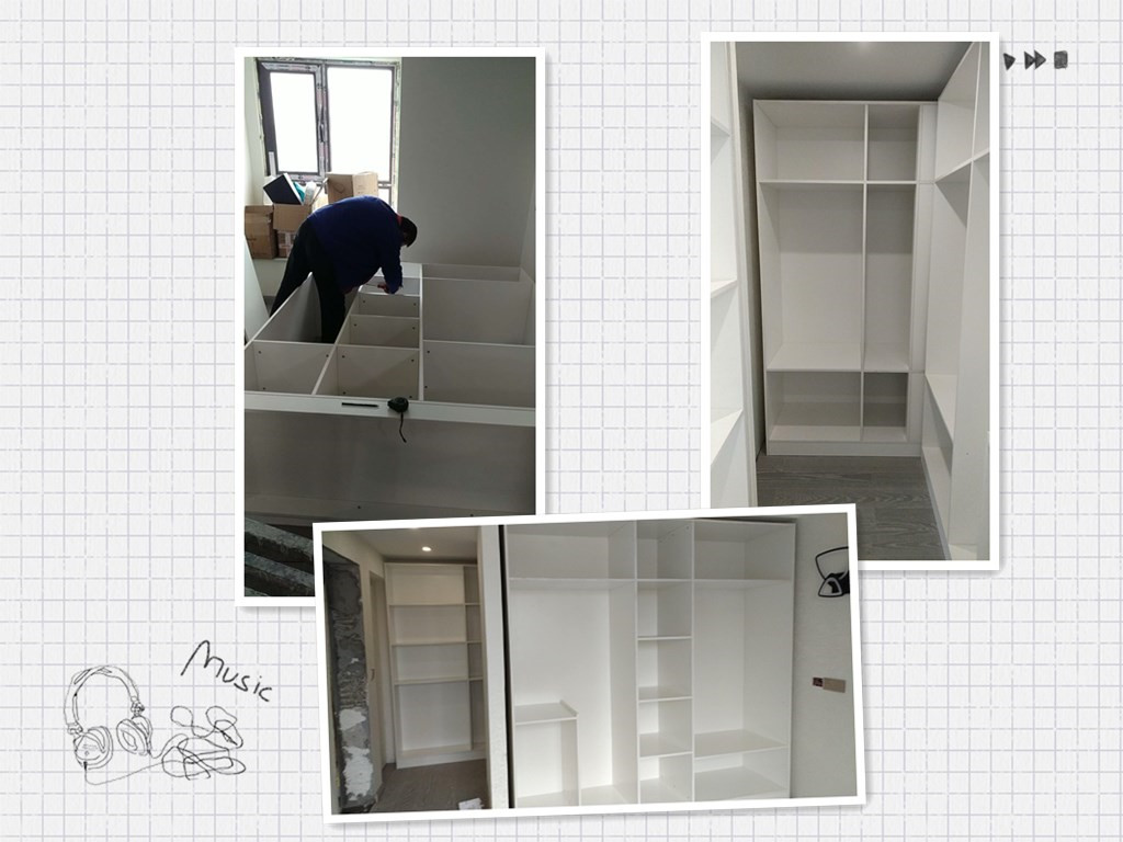 昨天的榻榻米和酒柜板材已經封好邊啦,今天制作板材打孔。