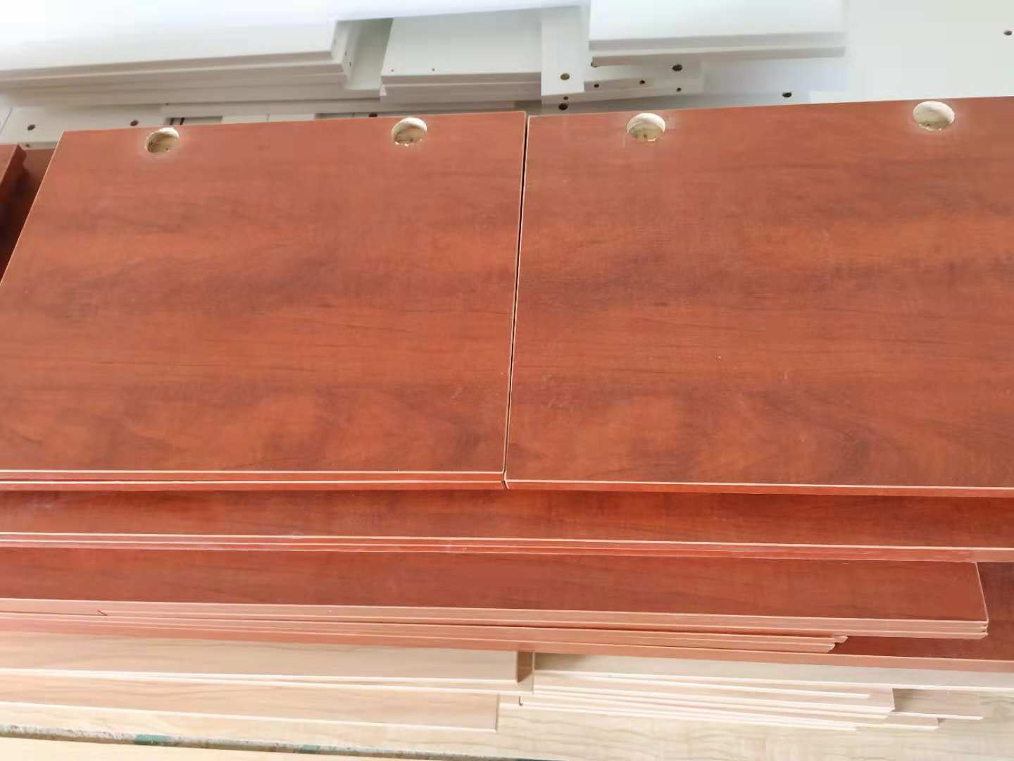 開始制作啦,衣柜板材打孔中,板材使用平安樹淺蘋果木色實木多層板制作,大孔是安裝鉸鏈用的。