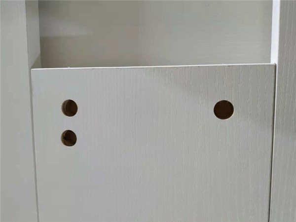 圖1是正在測量打孔的入門鞋柜板材,圖3是已經(jīng)打好孔的衣柜板材。