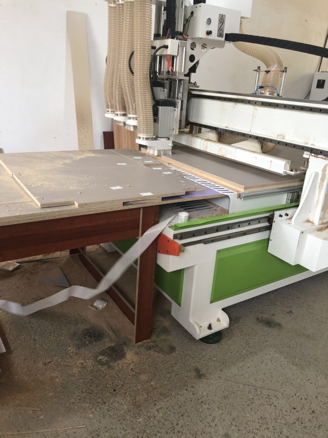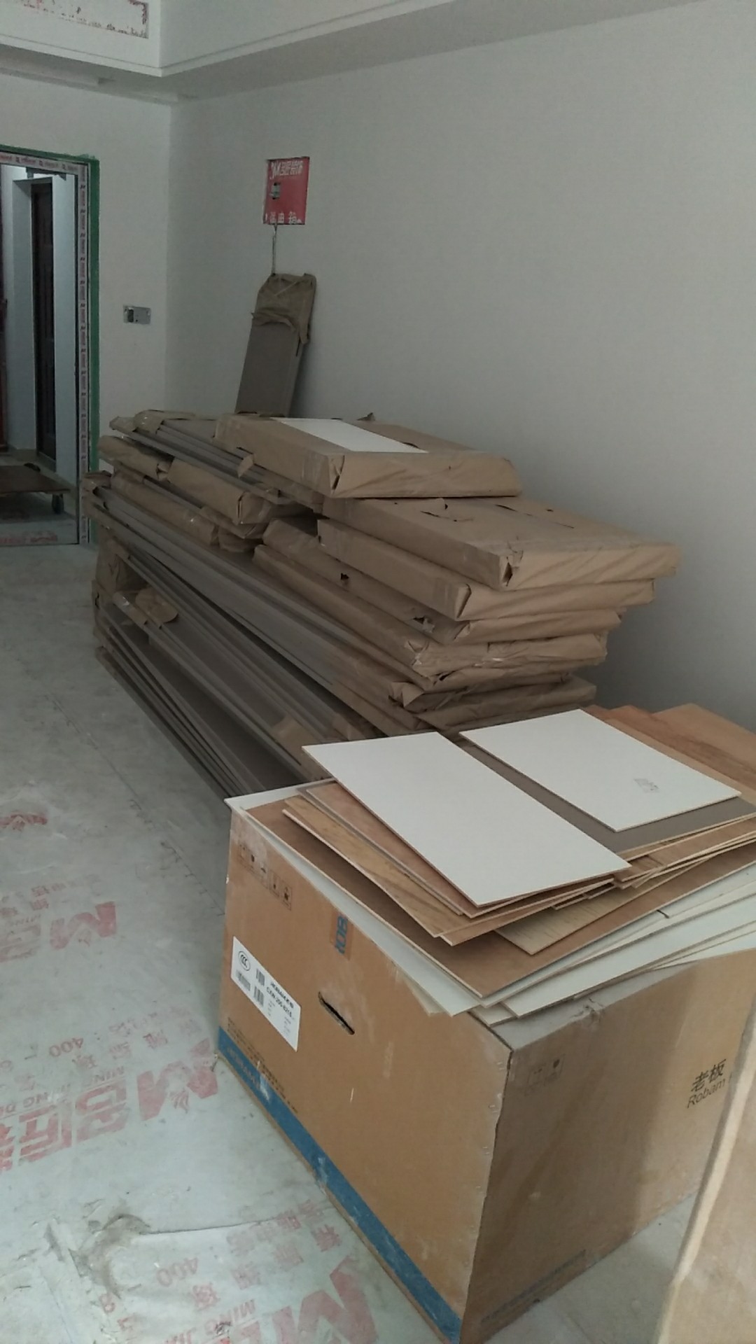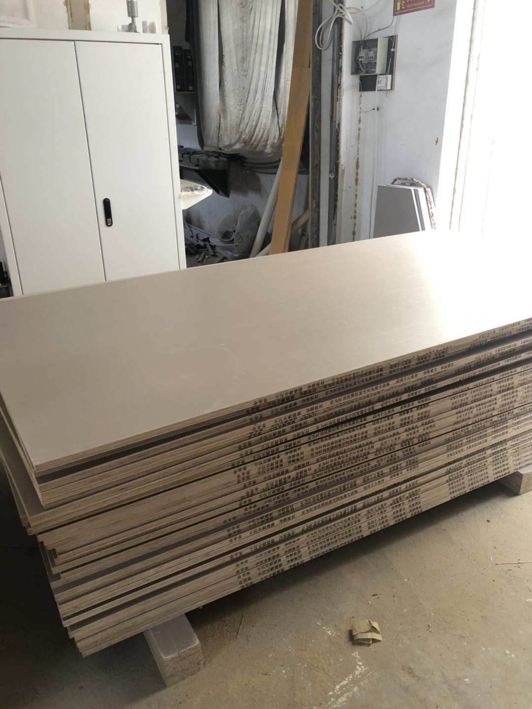 衣柜開板了,板材使用平安樹實木多層進口暖白制作,真材實料,有高級的藍光防偽標識,圖4-6是榻榻米鞋柜書桌等柜體板,板材使用金蘋果時尚灰制作。