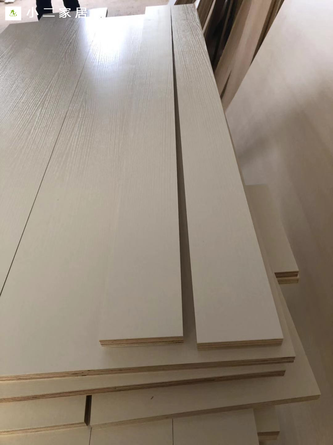柜門板材封邊中,封邊使用專門的機器封邊,達到高溫200°C封邊哦,封邊使用的熱熔膠顆粒膠用的是進口法國波士顆粒膠,封邊條上印有小二家居的logo。