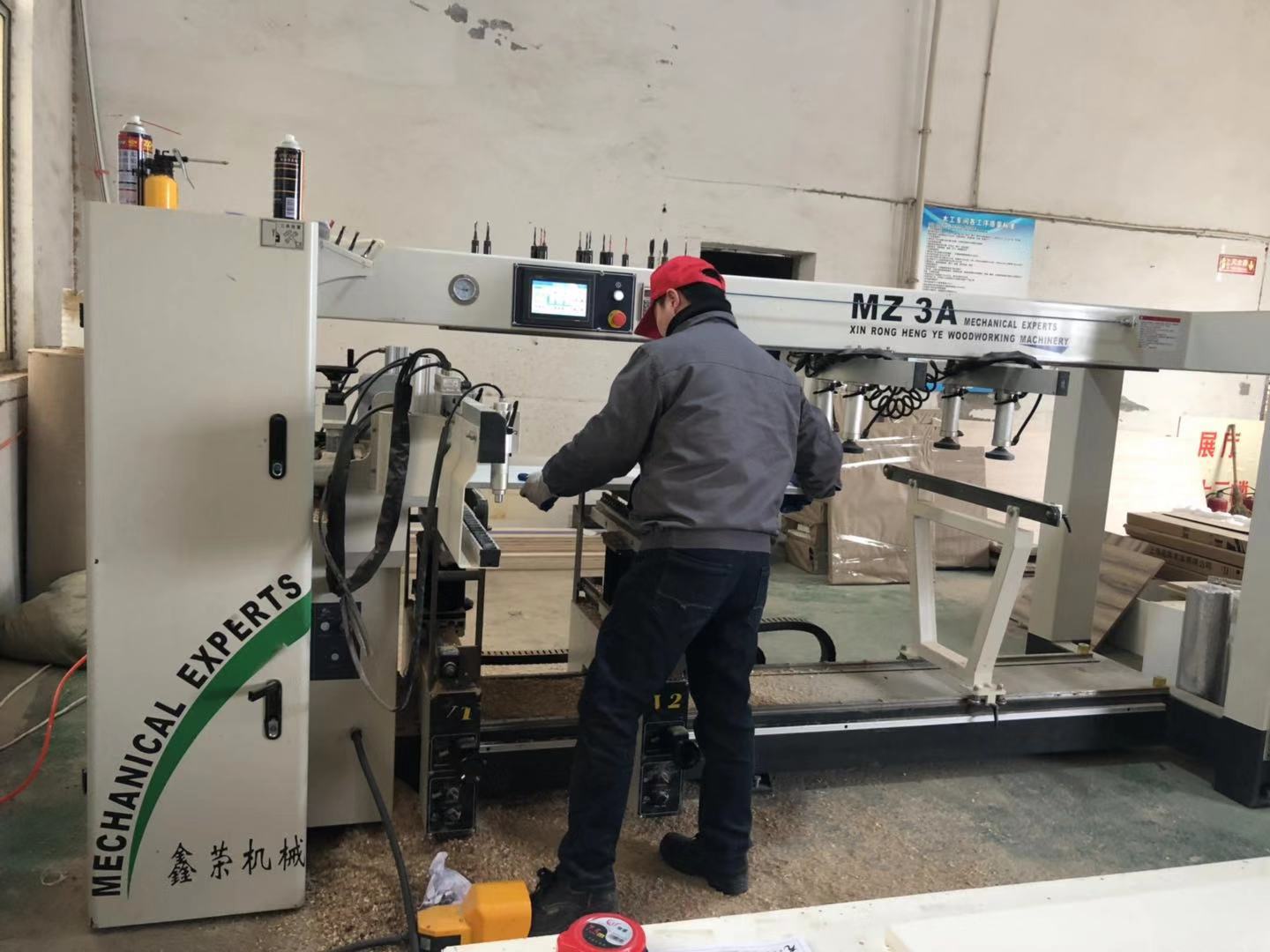 衣柜板材裁板中,板材裁的差不多啦,一會就可以封邊了,板材正在打孔中。