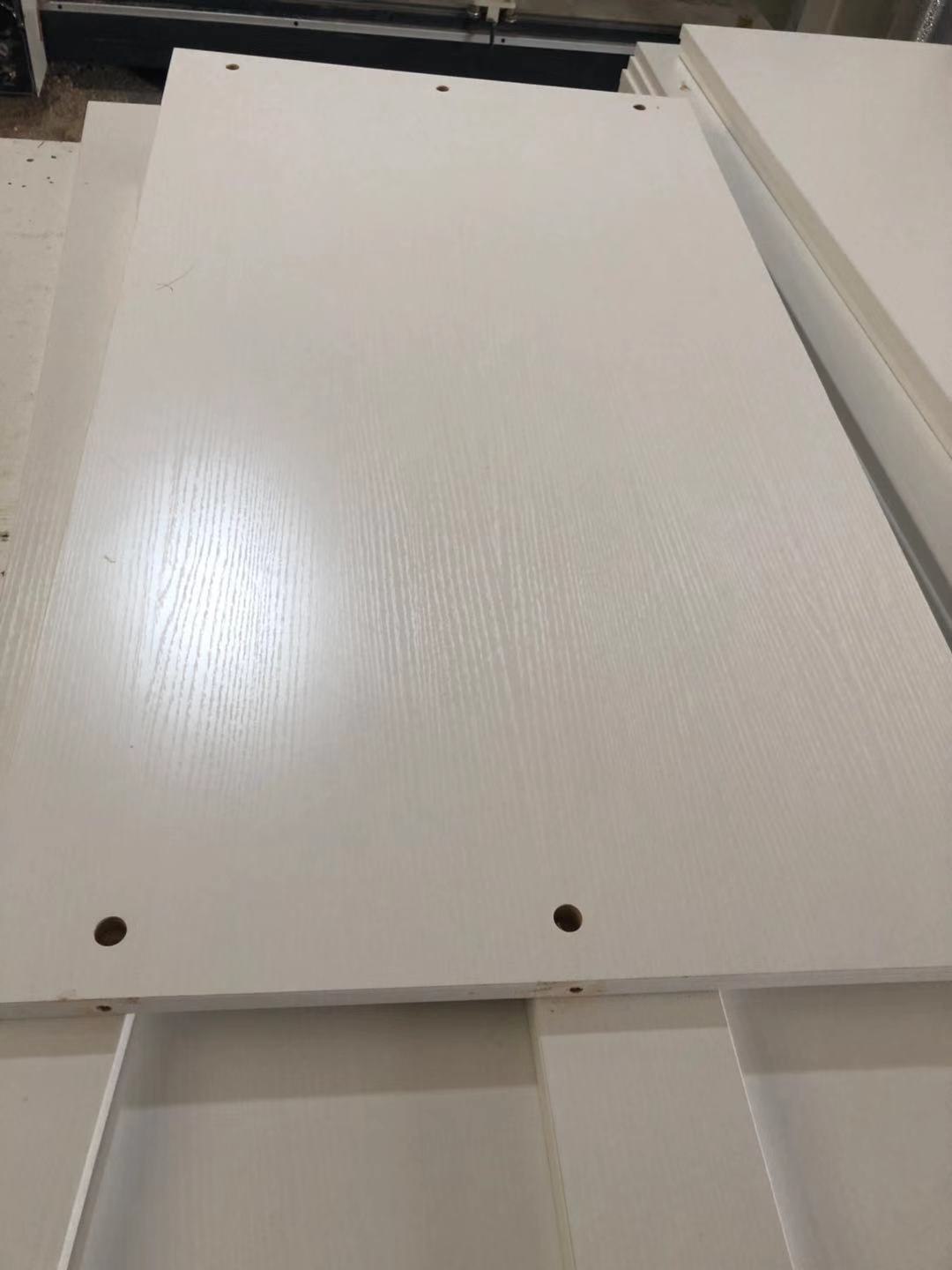 衣柜的板材已經封好邊打好孔啦,用專門的設備封邊打孔,封邊壓的緊實,打的孔圓潤沒有爆邊~