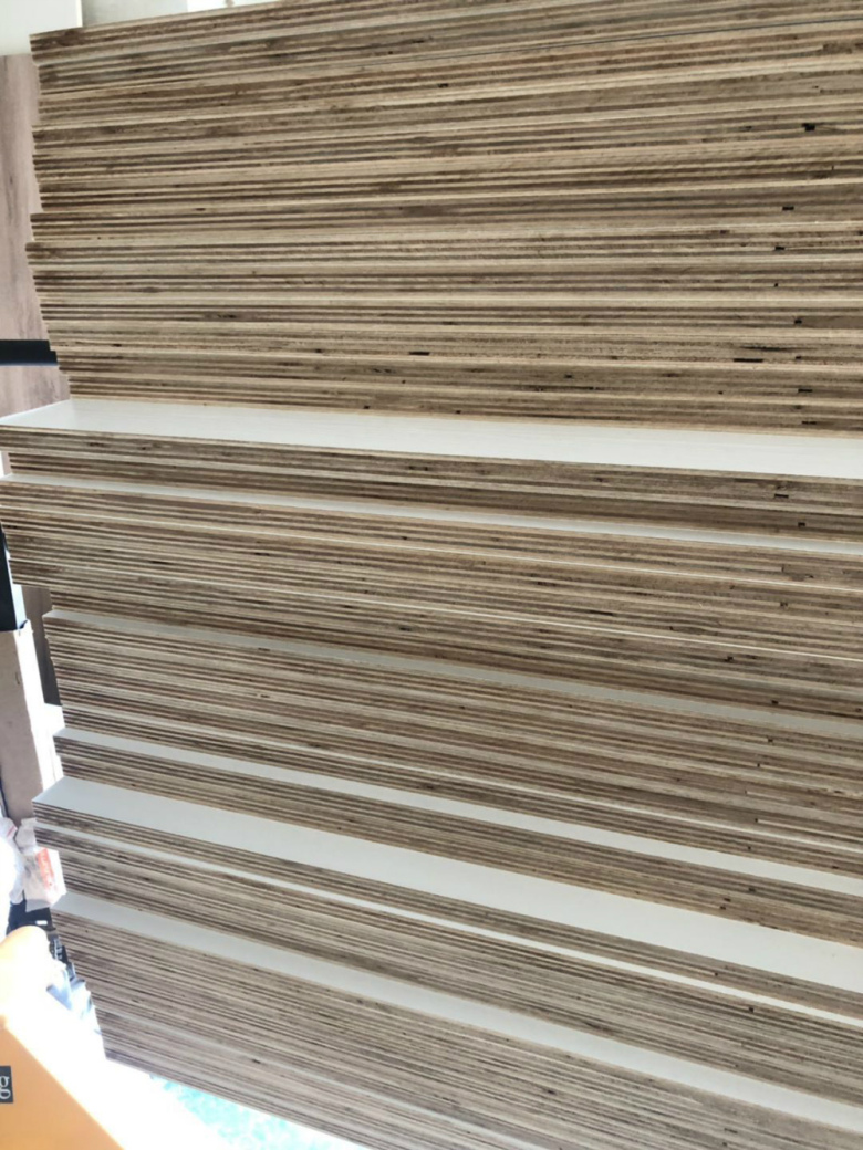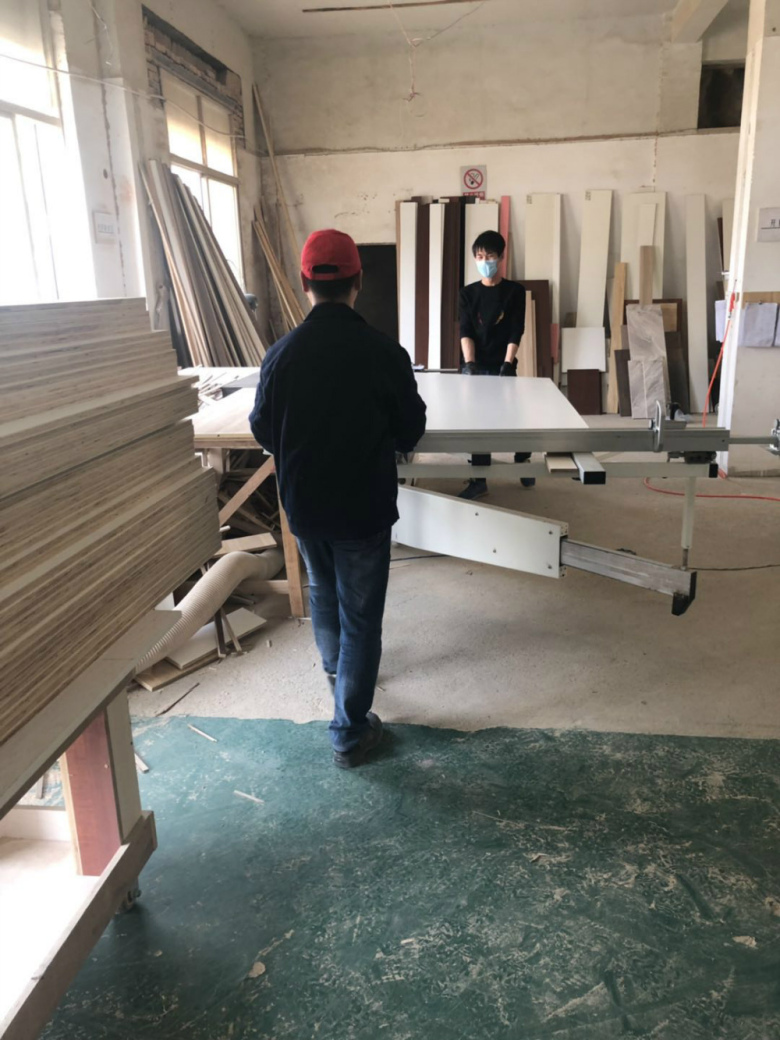 開始制作了,裁板中,板材使用暖白色平安樹實木多層板E0級制作,有高級的藍光防偽標識哦