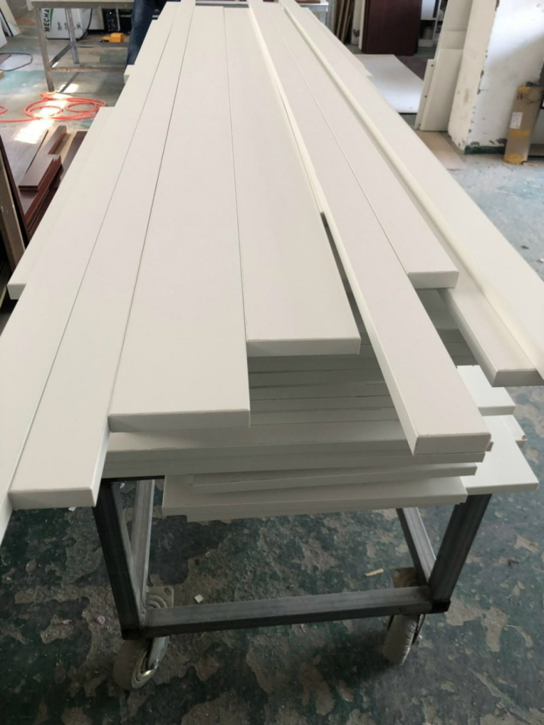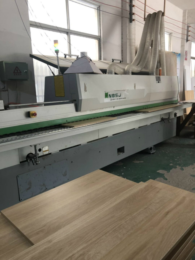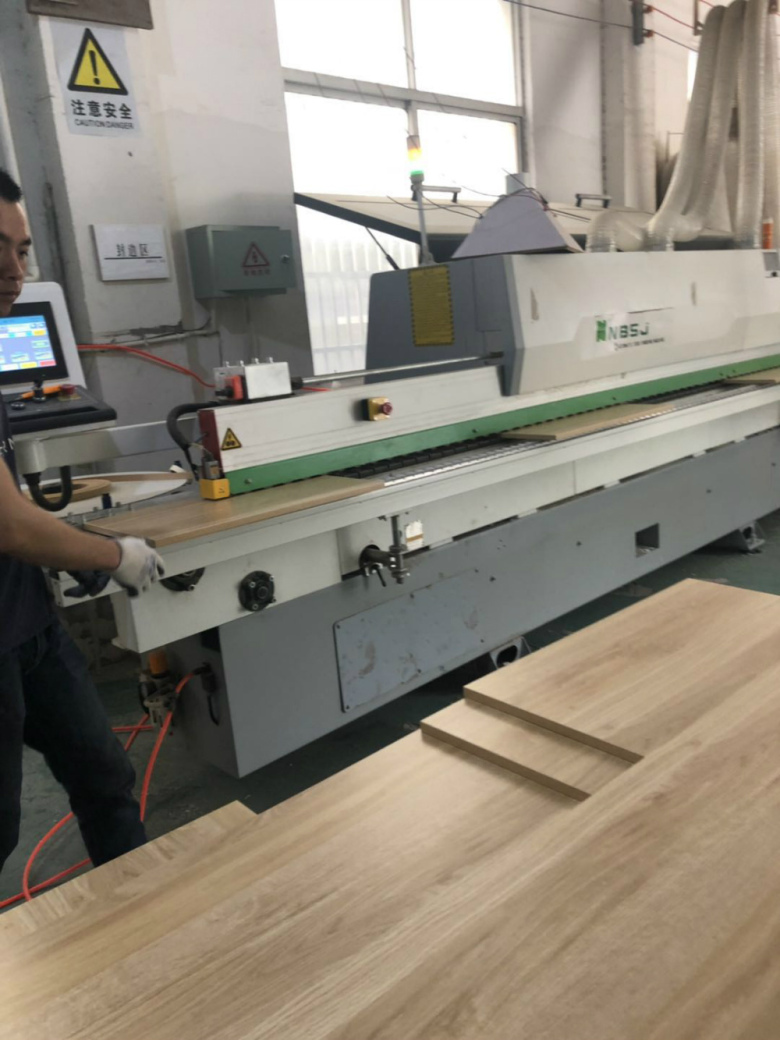 開始封邊了,專業設備封邊,沒有爆邊!使用進口波士熱熔顆粒膠封邊,機器設備到達200℃開始封邊!滾輪傳送帶可調節,方便運輸不同大小板材。