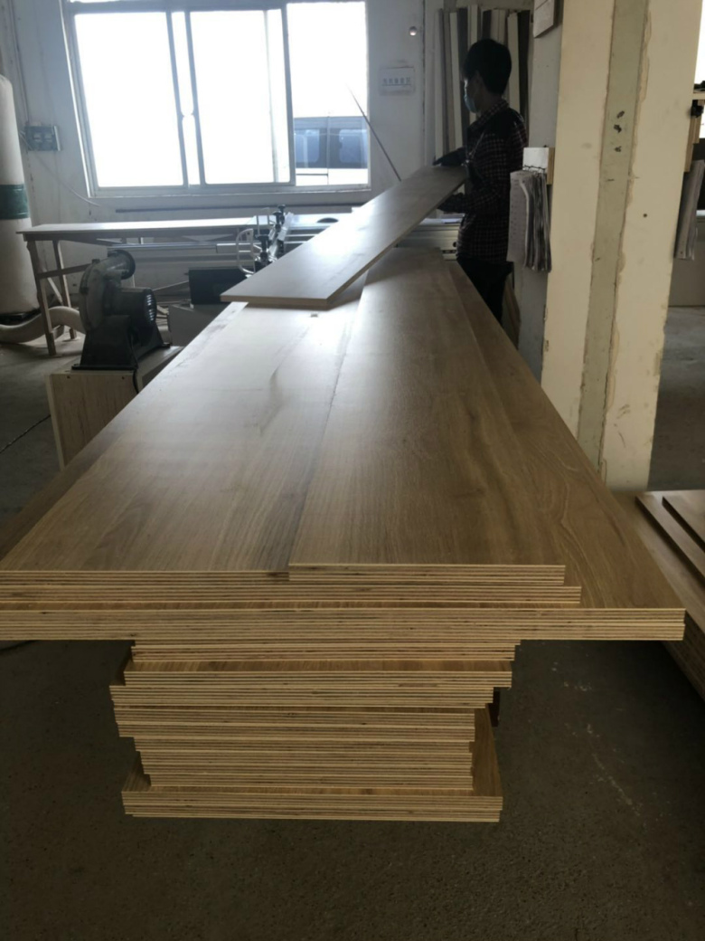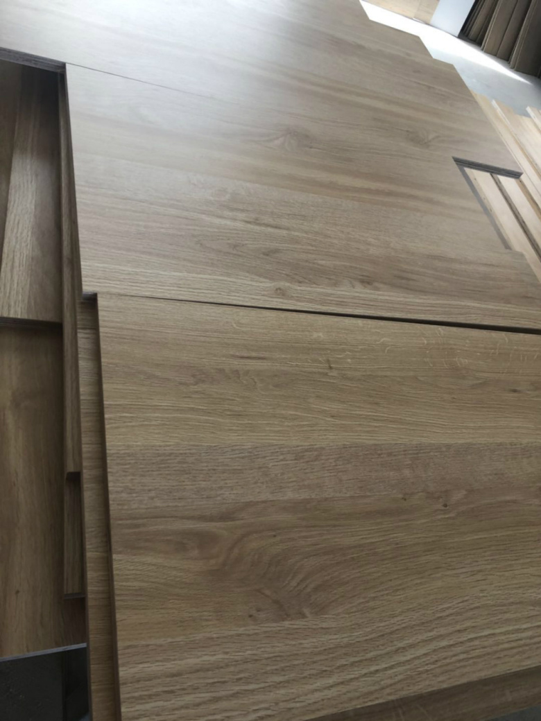 餐邊柜電視柜玄關及榻榻米開始裁板了,板材使用清水橡木原木色制作 ,裁出來的板沒有爆邊。