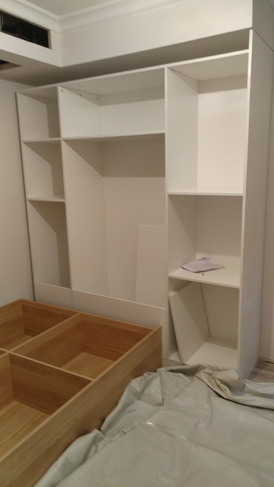 經過三天的努力,終于完工了,還有點收尾,后面還要再去一趟,不得不說業主大大家的這個隔斷柜蠻好看的,整體效果完美