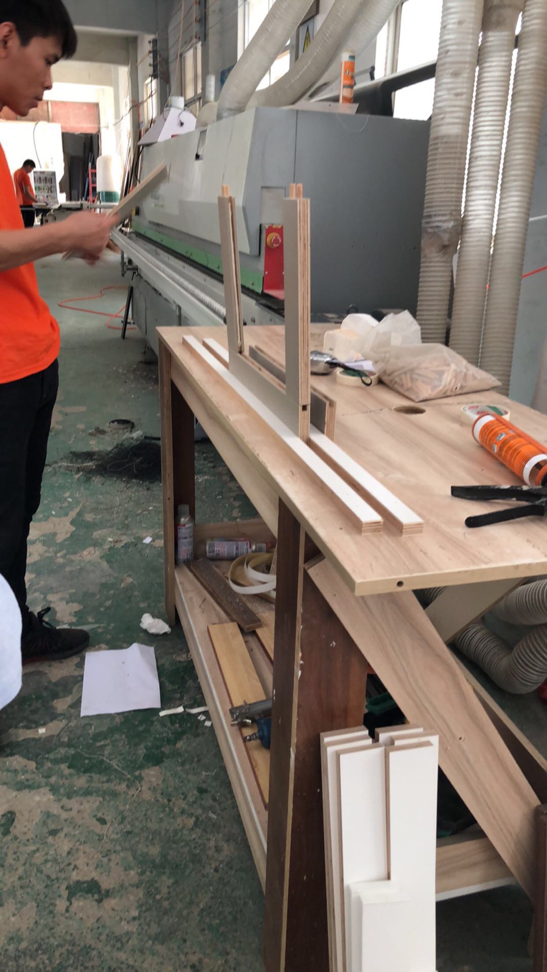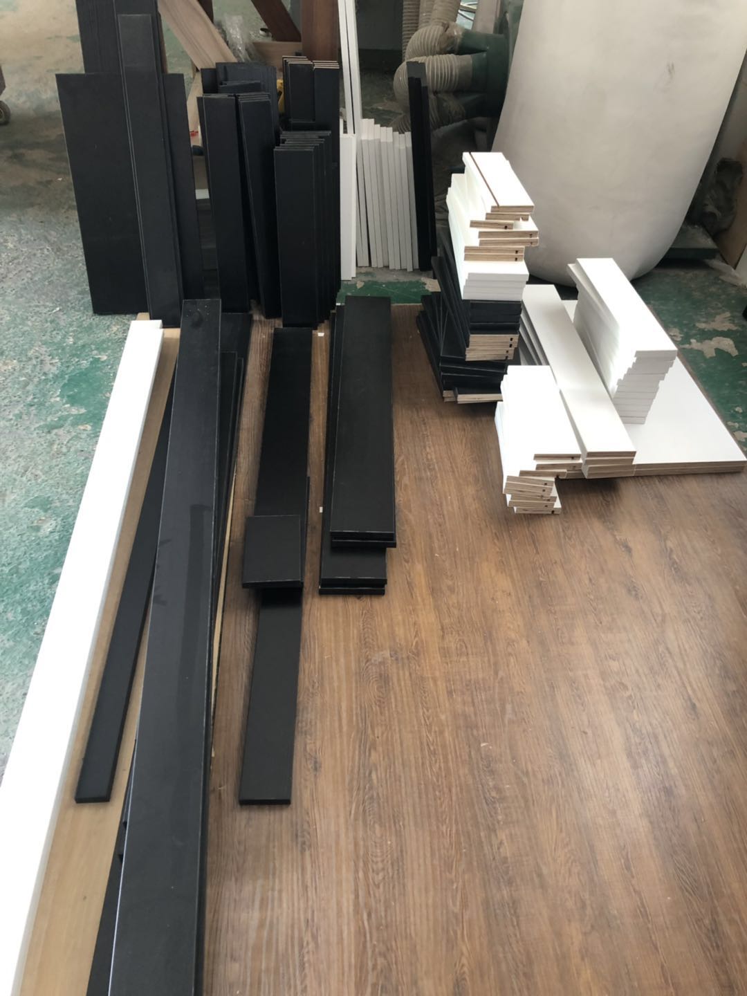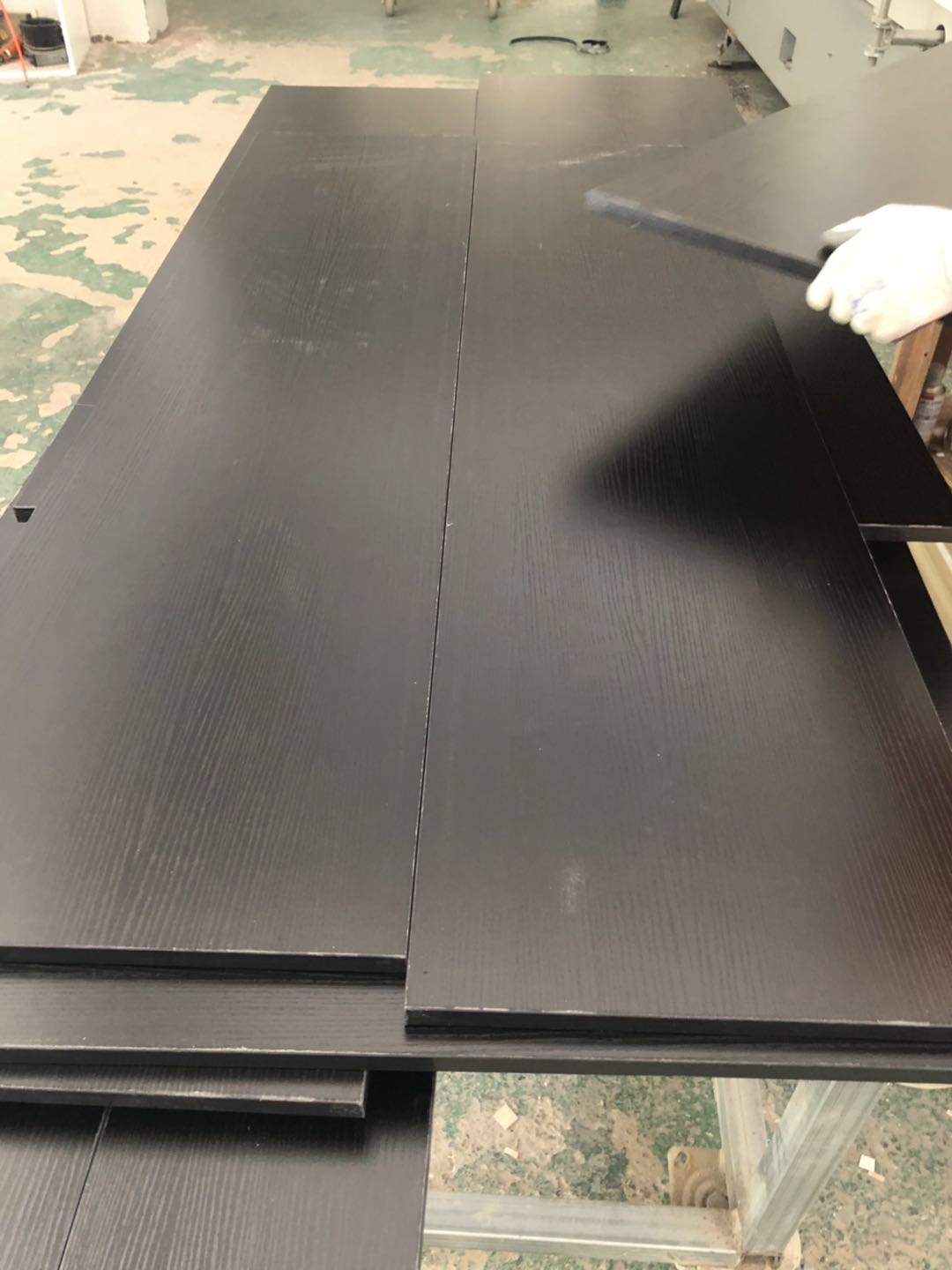 開始制作了,衣柜裁板中,板材使用平安樹白色實木多層板制作,有高級的藍光防偽標識哦,圖4到圖9是衣帽間的柜體板封邊中,使用黑色平安樹實木多層板制作,采用法國波士熱熔顆粒膠,設備封邊溫度達到200°C封出來的邊牢固,沒有爆邊~