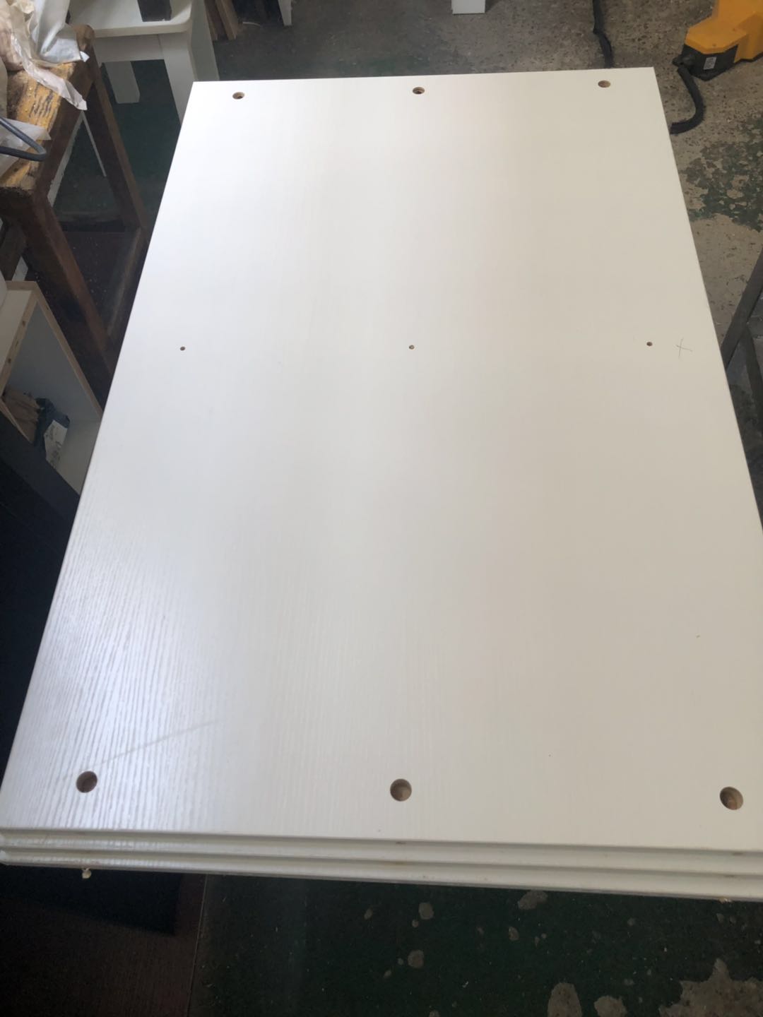 所有的柜體歸類好擺放有序,待打孔中,使用專業設備打孔,打出來的孔圓潤,沒有爆邊~