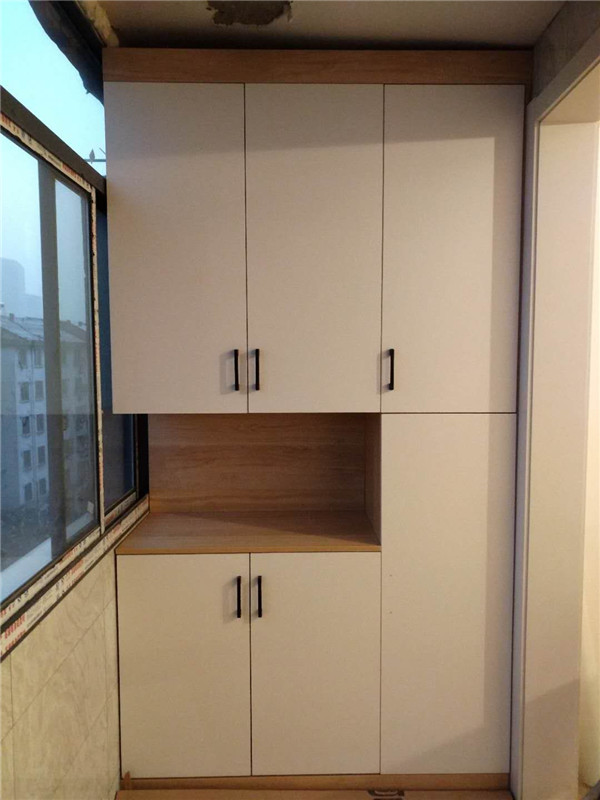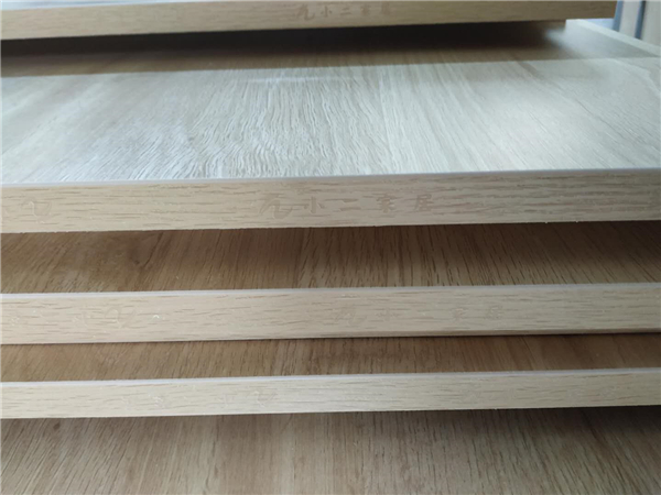 這是已經封好邊的移門衣柜板材,封邊條上印有小二家居的logo。