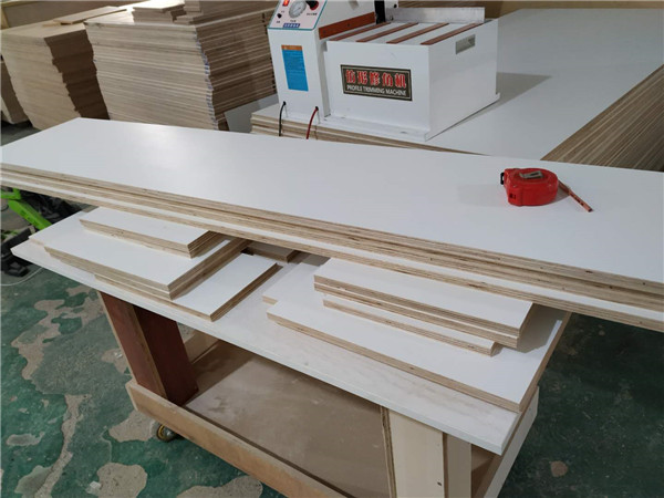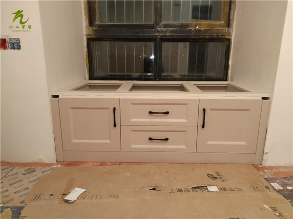 圖1圖2是鞋柜柜體板,裁板封邊完畢待打孔,封邊條上印有小二家居的logo~板材使用平安樹暖白色實木多層板制作。