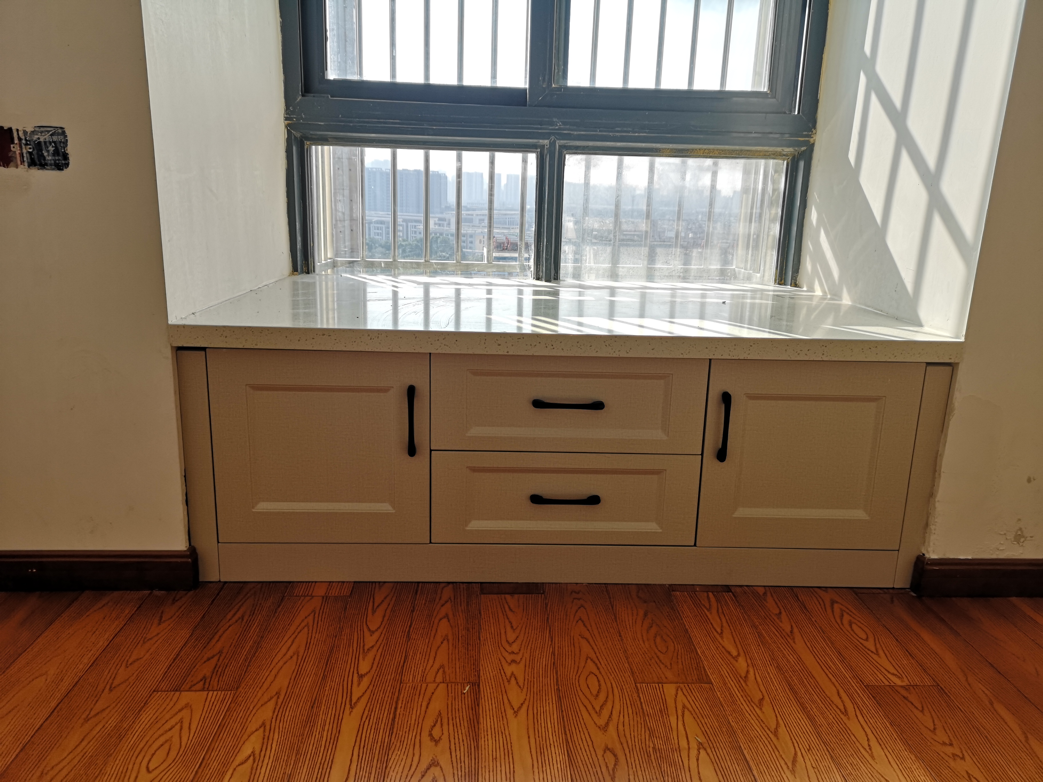 裝上臺面了,傳一波畢業(yè)照,圖6圖7柜子上方待油漆工補縫后就更加完美了。