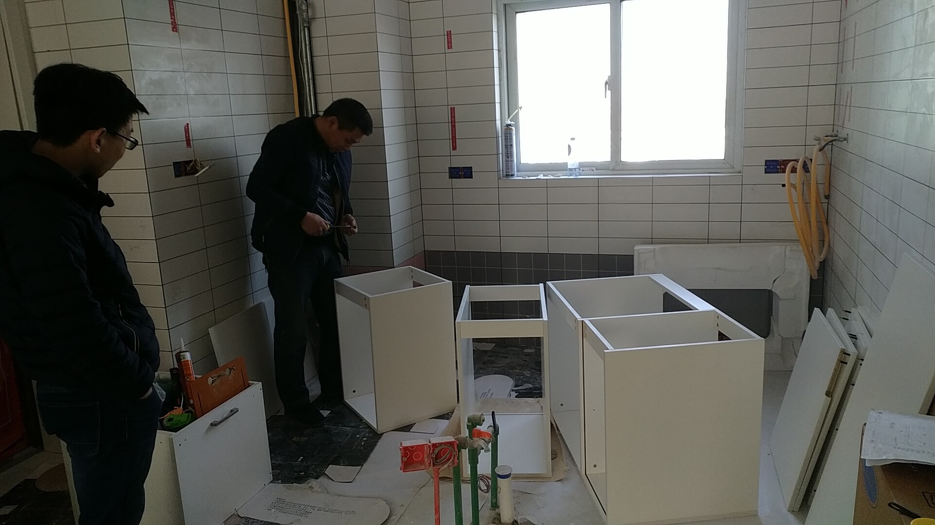 開始安裝啦,安裝師傅辛苦 了