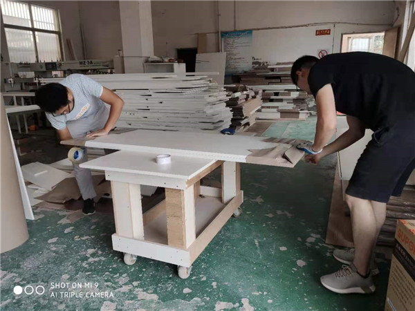 全場走動員,整個車間都在做客戶家的,從拆板到封邊再到打孔。火辣辣的太陽,勤奮認真的師傅們。