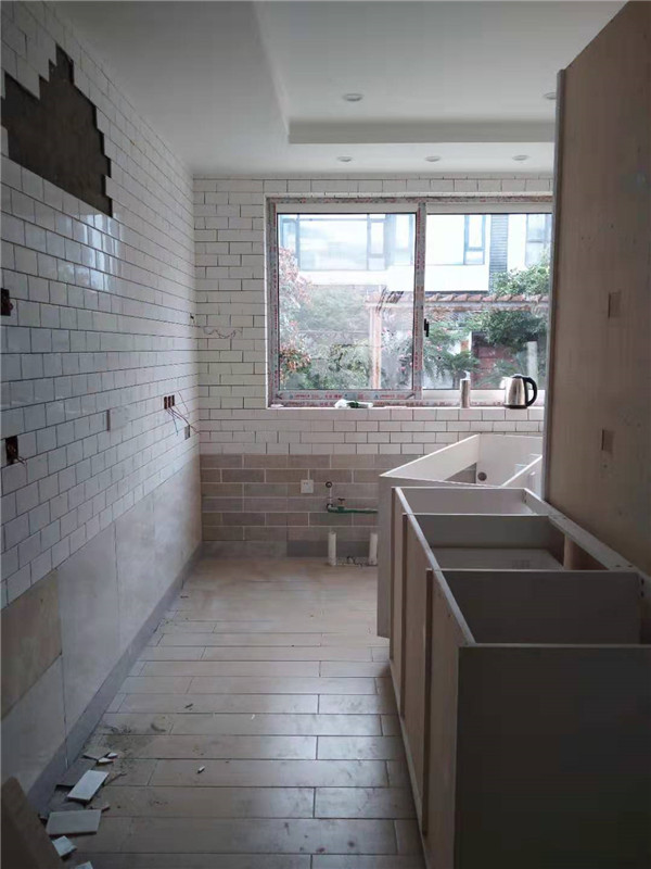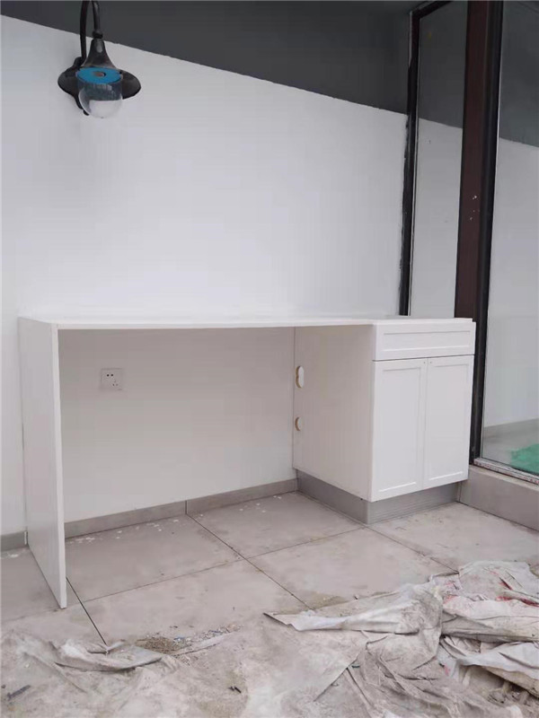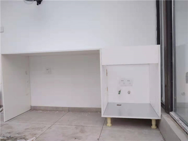 櫥柜臺面早早就已經(jīng)安裝好了,現(xiàn)場蠻整潔的,上圖