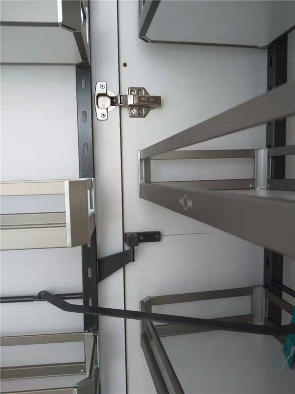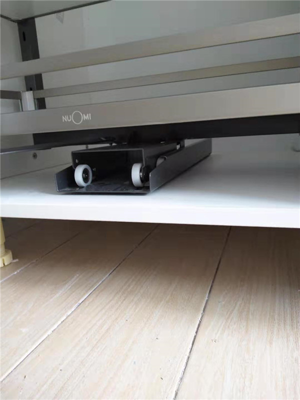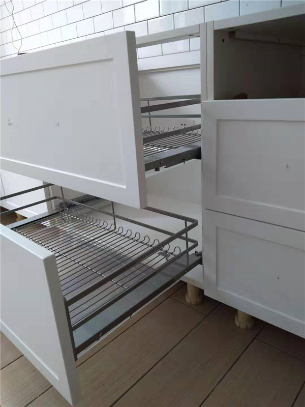 所用五金:ABS尼龍柜腳、諾米鉸鏈、海蒂詩導(dǎo)軌、托底抽等。拉籃安裝好后都用保護膜保護起來了,