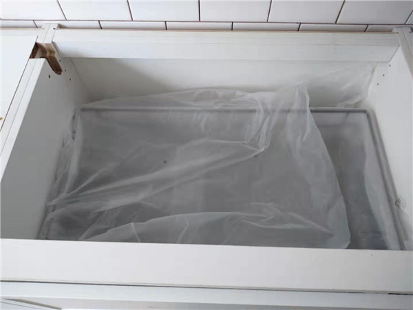 以防后期落灰導(dǎo)致導(dǎo)軌不好拉,水槽下面都有貼錫紙哦。安裝師傅對每一個階段都要求精益求精,請看細節(jié)圖,