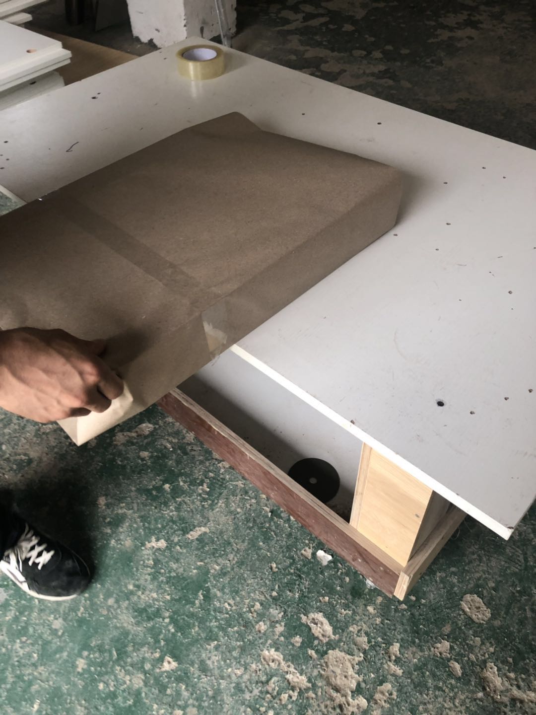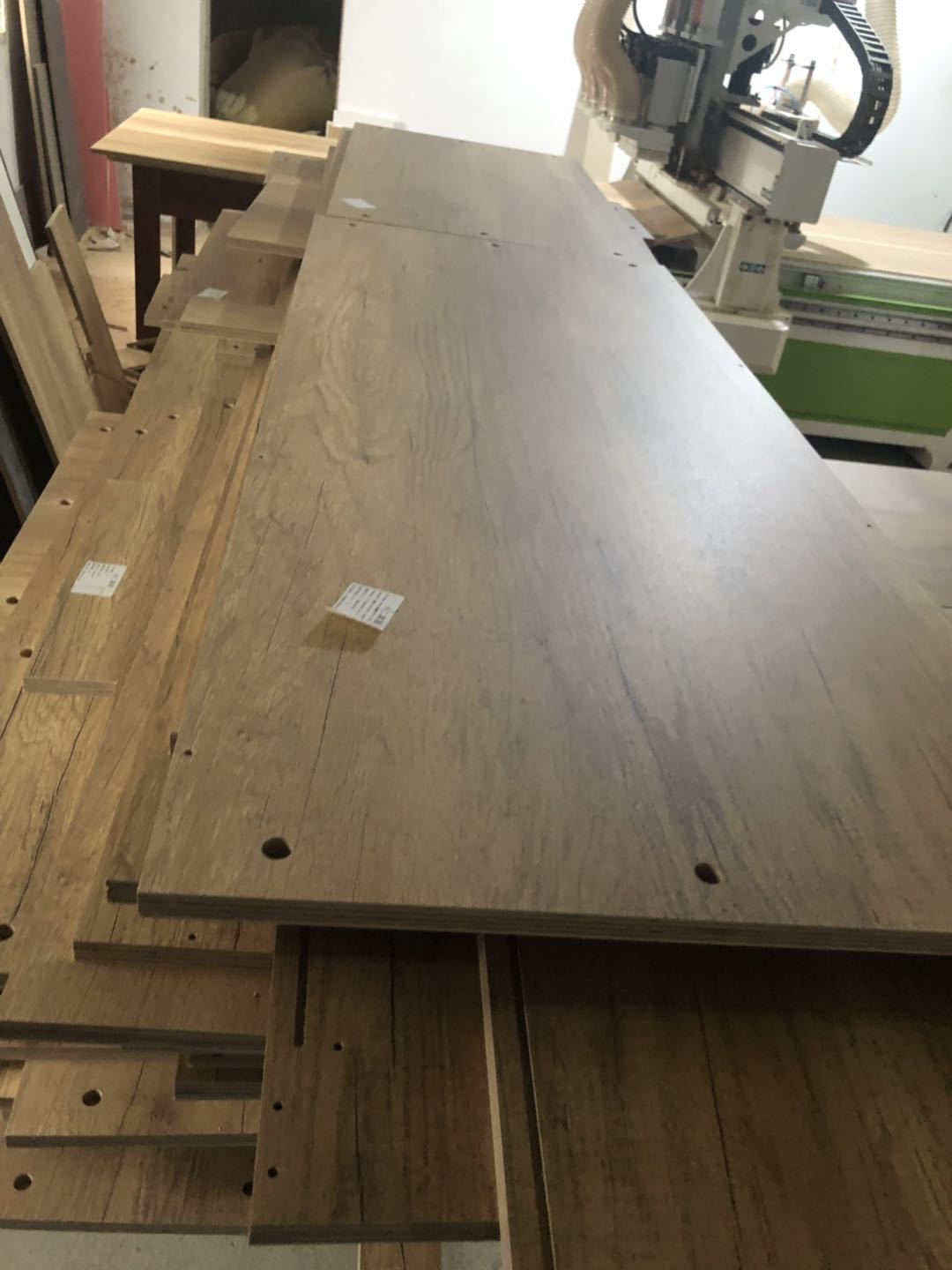 開始制作了,板材使用平安樹實木多層仿古布紋E0級制作,真材實料,有高級的藍光防偽標(biāo)識,因天氣下雨的原因,室內(nèi)有點暗拍出來的效果有色差,實物顏色以色卡上的顏色為準(zhǔn)。