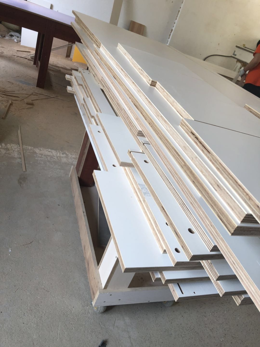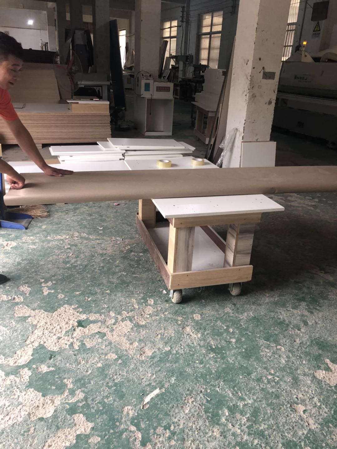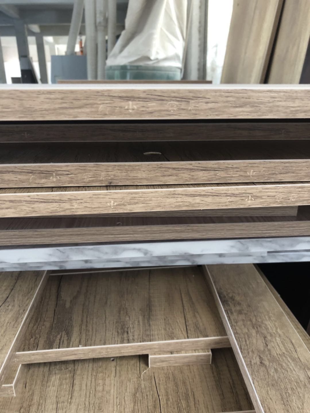 圖1-4是門板,板材使用平安樹實木多層暖白色制作,圖5-9是柜體已經(jīng)封完邊了,采用法國波士熱熔顆粒膠,設(shè)備溫度達到200°C封出來的邊牢固,沒有爆邊~封邊條上有小二家居的Logo哦