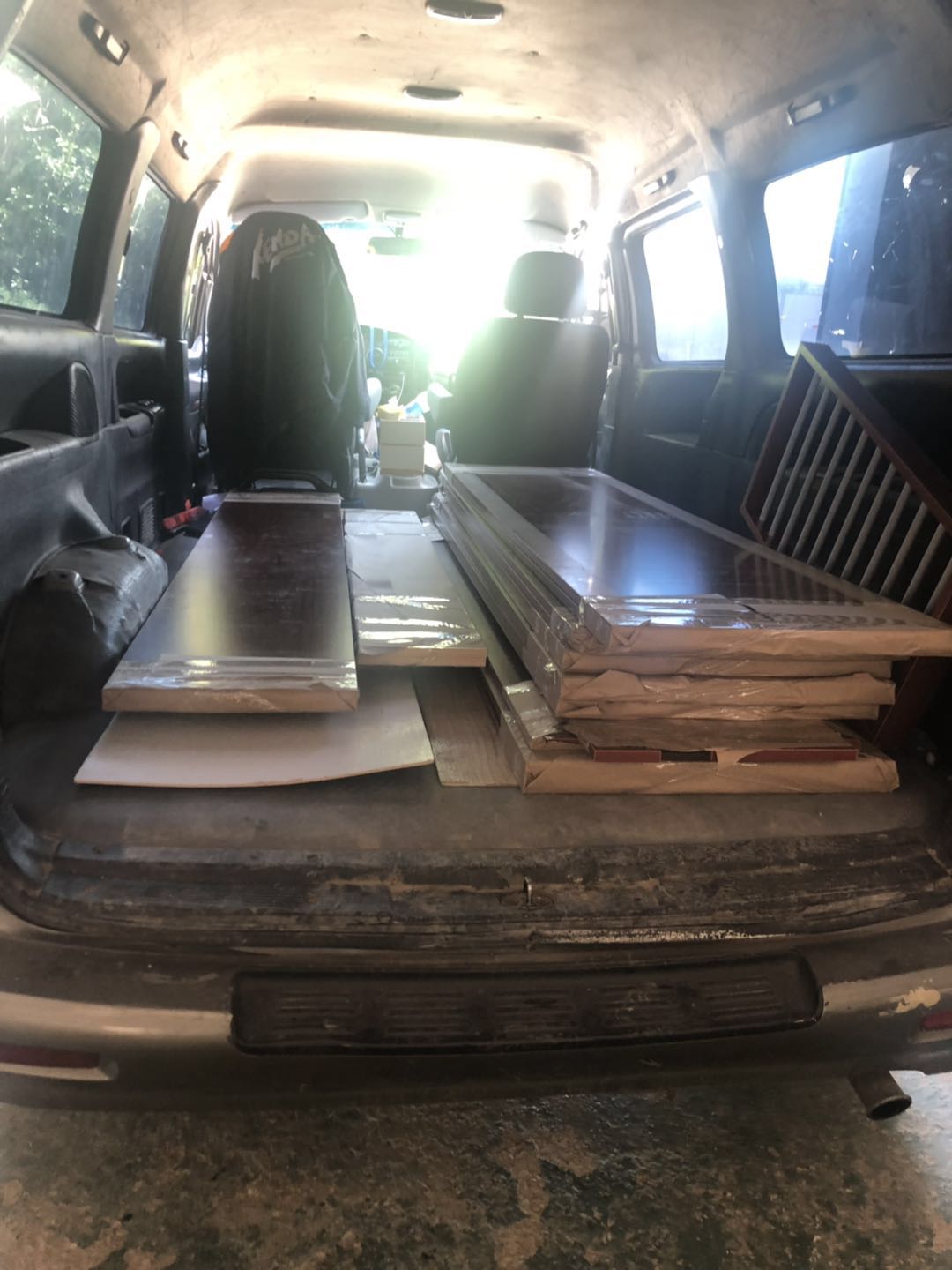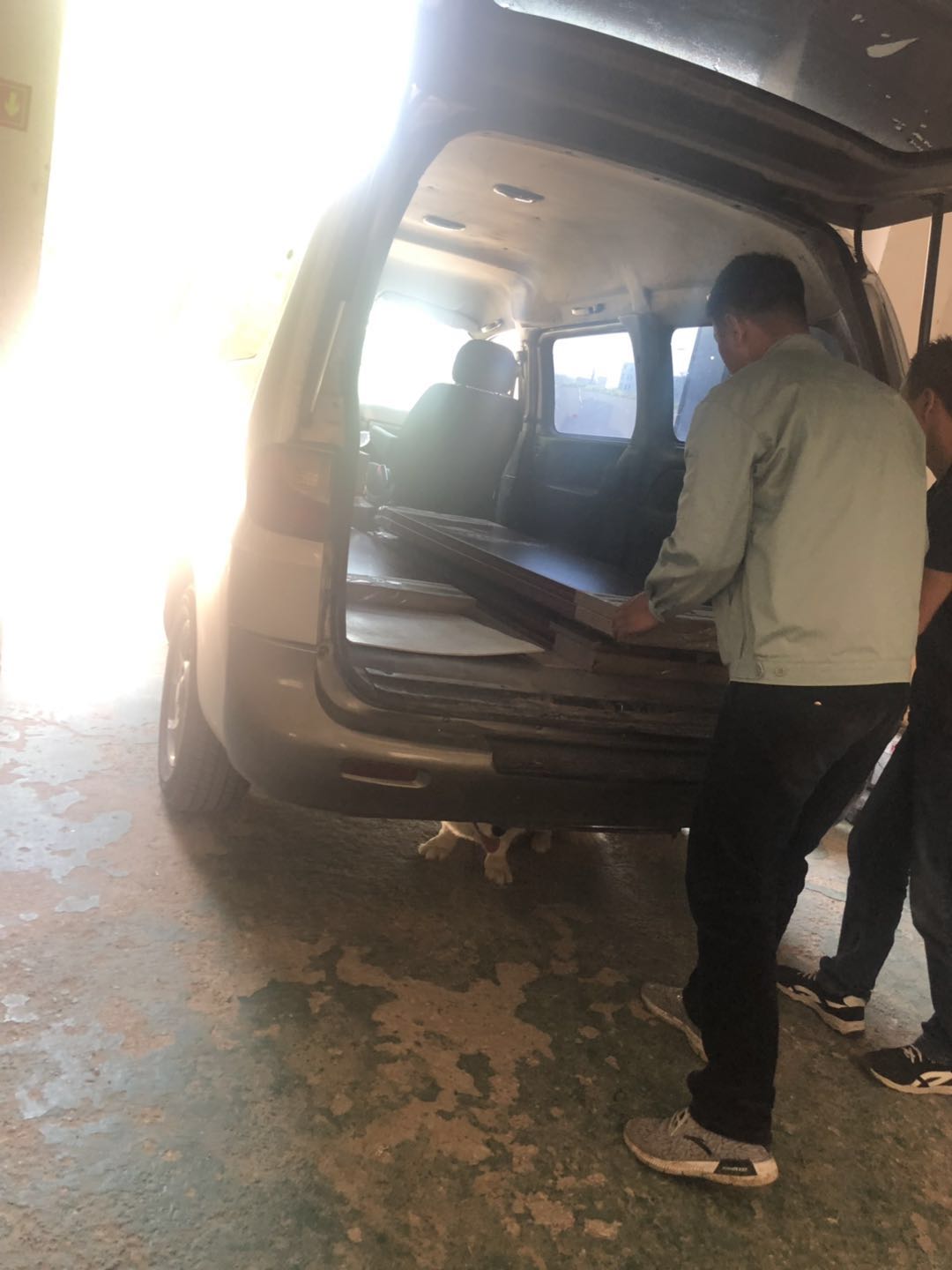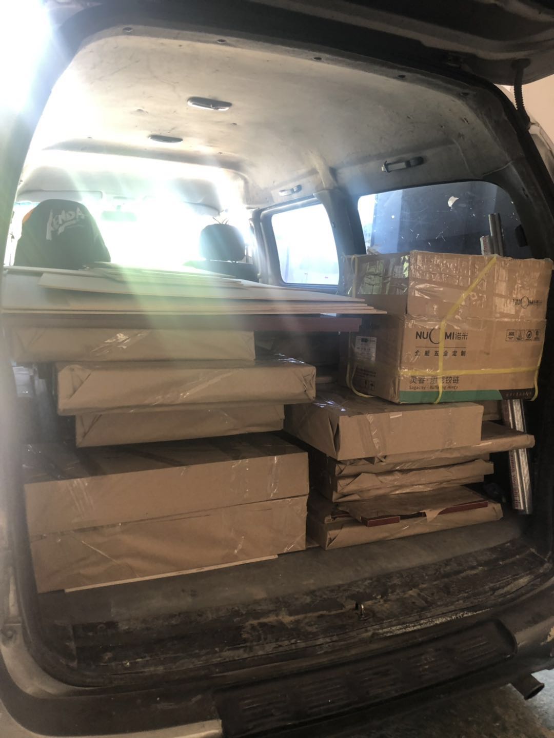 打包完畢開始裝車,滿滿的一車。下午就去送貨了。