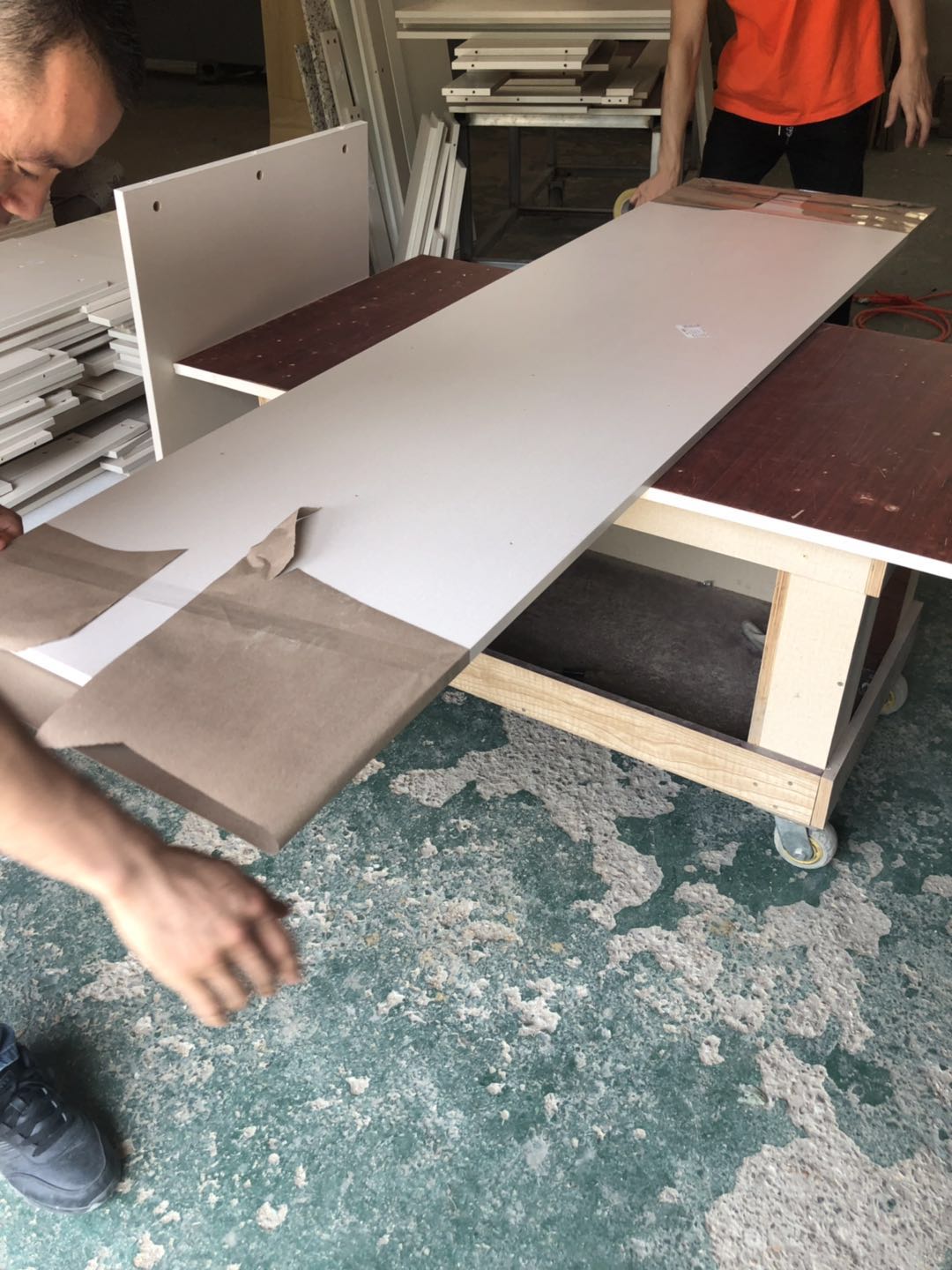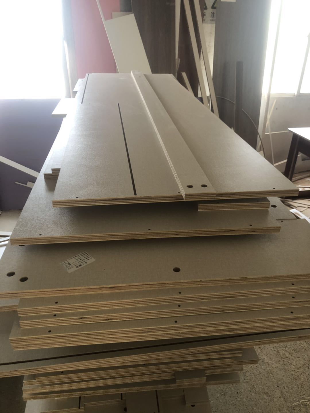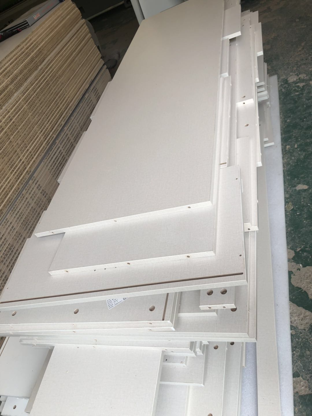 開(kāi)始制作啦,裁板打孔中,圖1是陽(yáng)臺(tái)吊柜,板材使用平安樹(shù)暖白色實(shí)木多層制作,有高級(jí)的藍(lán)光防偽標(biāo)識(shí)哦,圖4-6是衣柜的柜體板,板材使用平安樹(shù)皮紋-1實(shí)木多層制作,裁出來(lái)的板沒(méi)有爆邊~