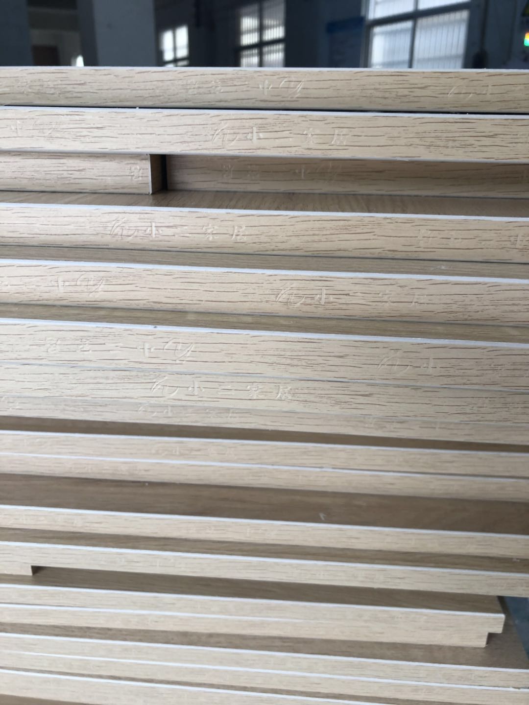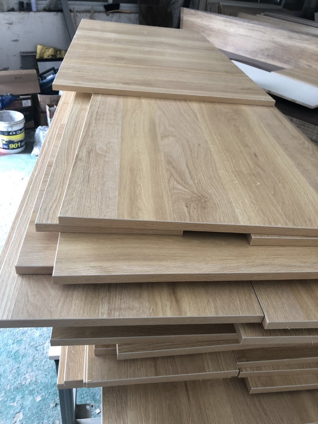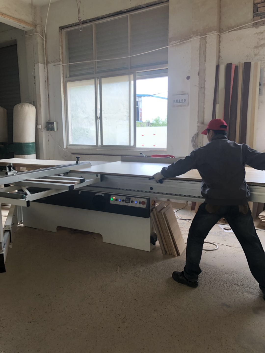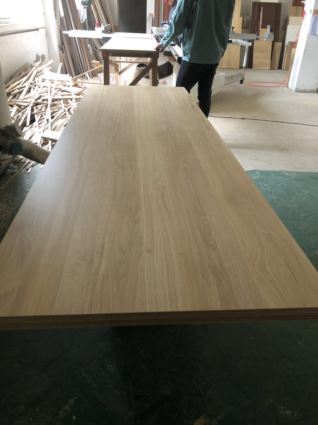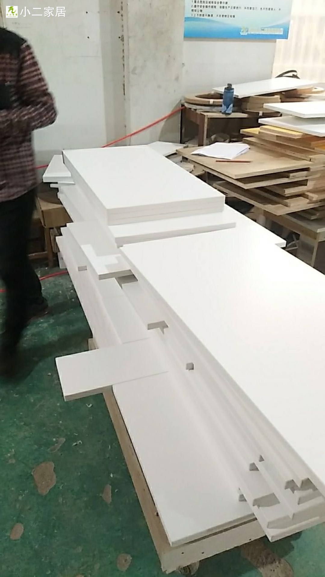 開始制作啦,衣柜裁板中,板材使用平安樹清水橡木E0級制作,有高級的藍光防偽標識哦,